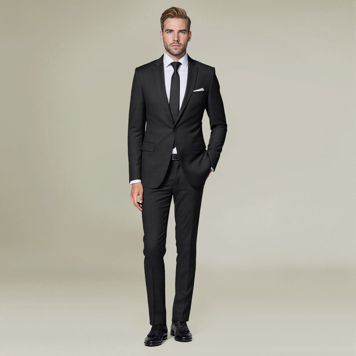 Our core line suits are crafted primarily using a high-performance TR Blend (Polyester/Rayon). This is a smart and practical fabric choice designed for the modern lifestyle.