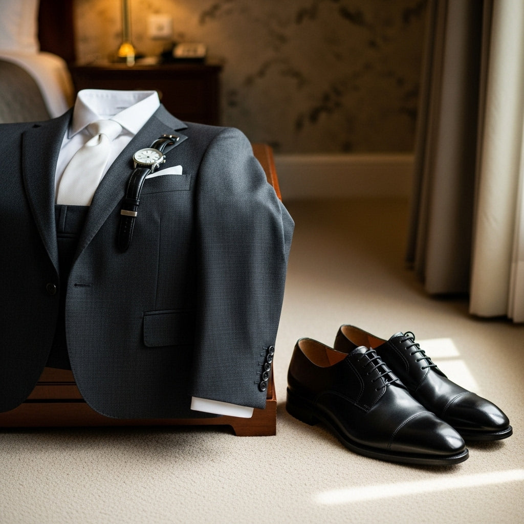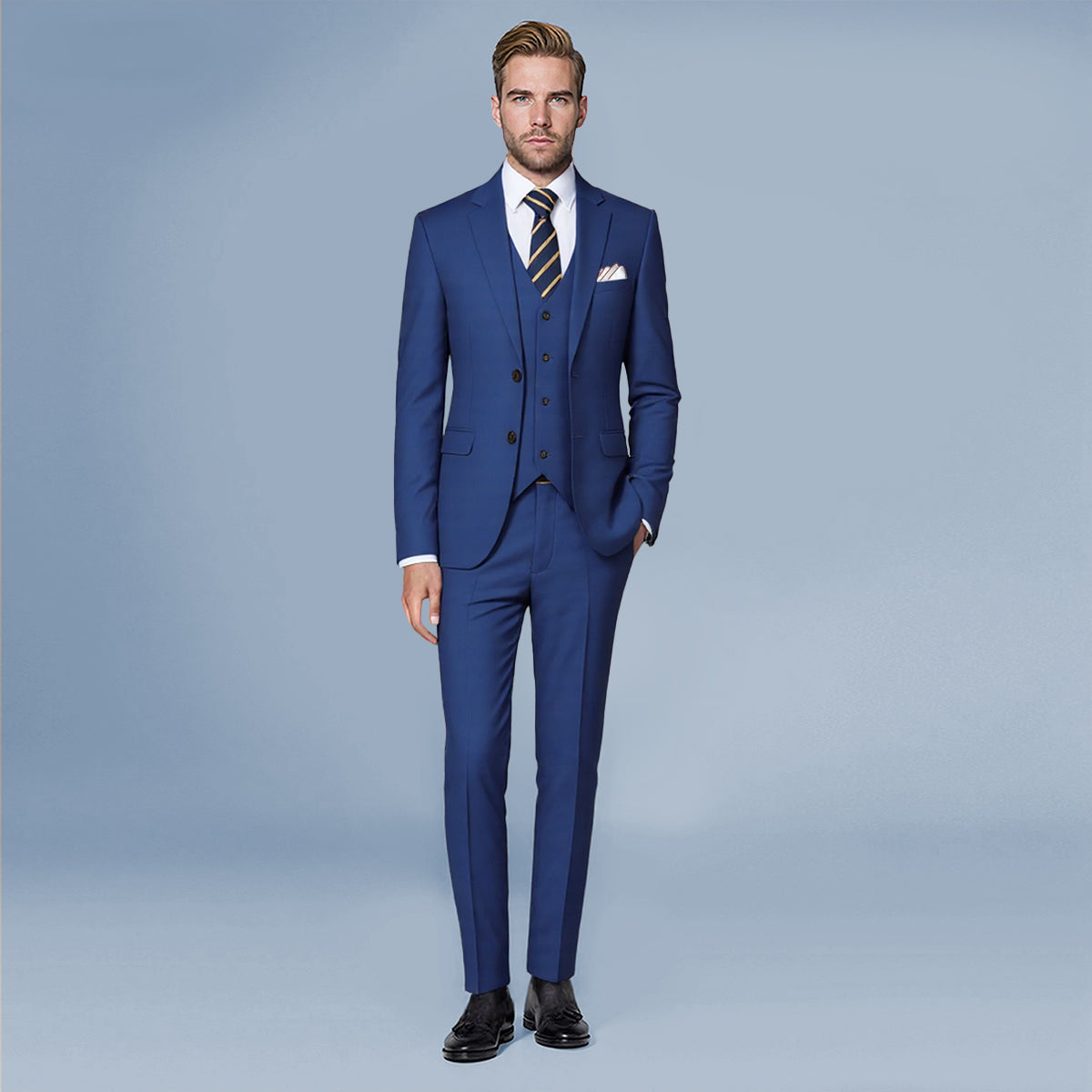 Our core line suits are crafted primarily using a high-performance TR Blend (Polyester/Rayon). This is a smart and practical fabric choice designed for the modern lifestyle.