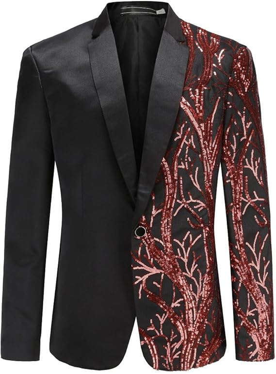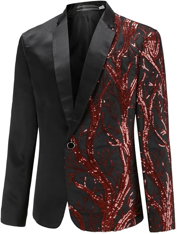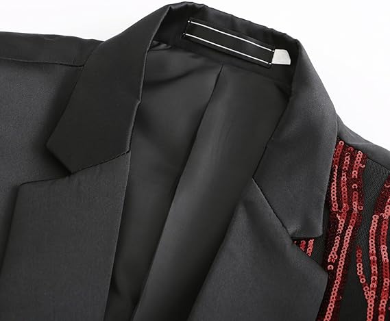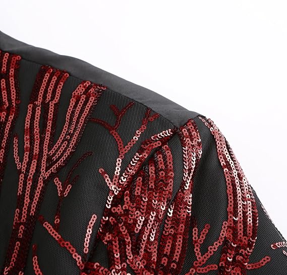 - DESIGN: This fashion shimmer suit tops with classic notched lapel,1 exquisite button fastening, features unique sequins pattern design; 3D tailored fit cut, full shoulder design and durable seams for an overall nice, expressing a sharp and elegant looking