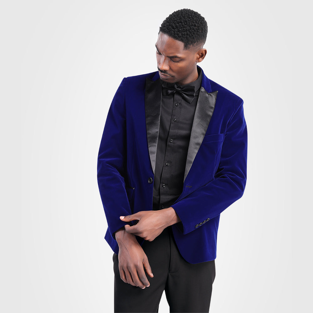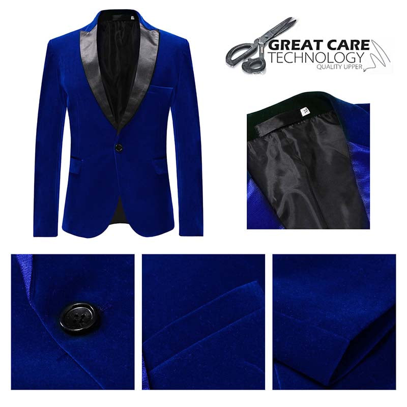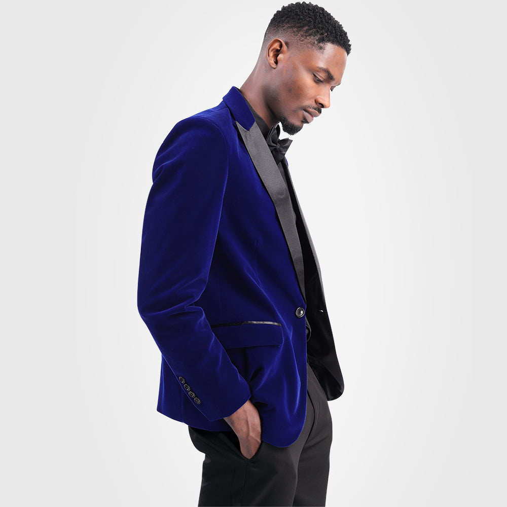 Blue Velvet Fashion Blazer Pleuche Tuxedo Jacket