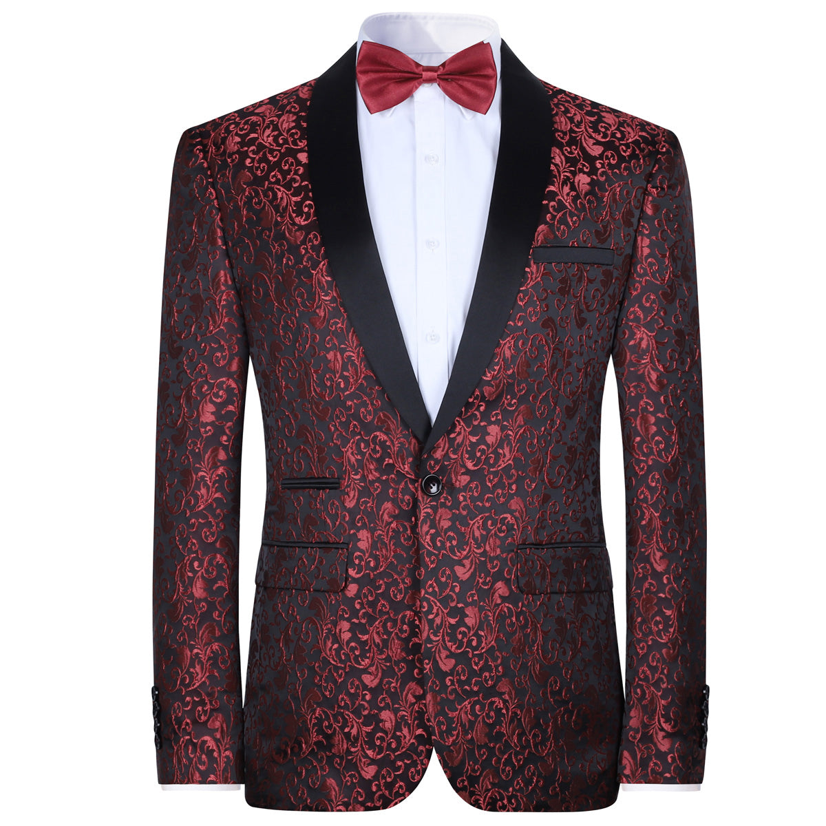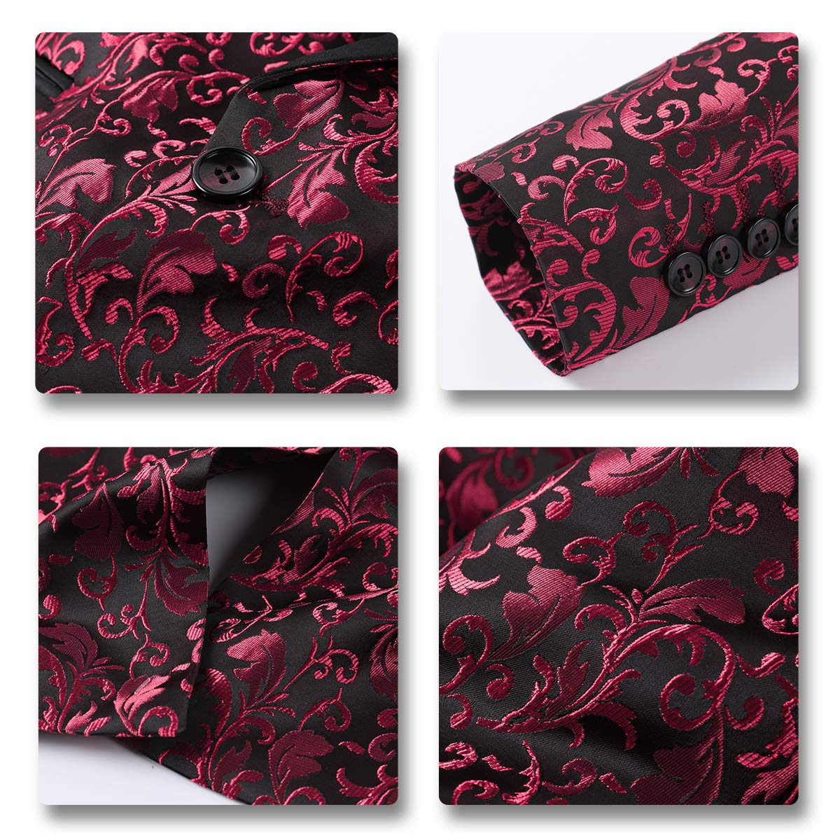 Men's Floral Jacquard Dress Suit Jacket Printed Tux Blazer Red