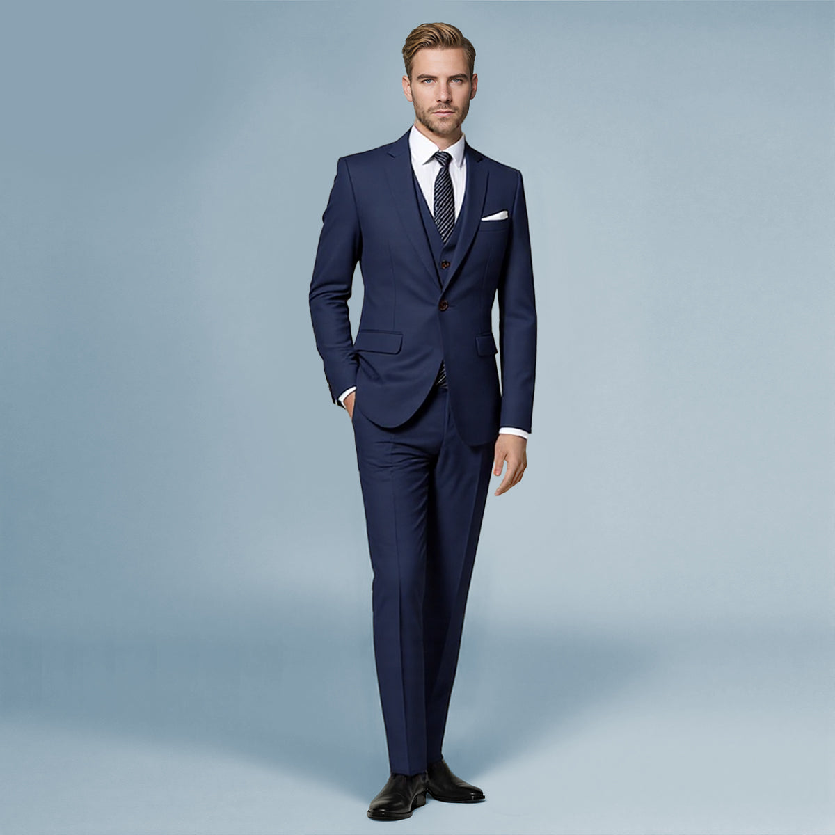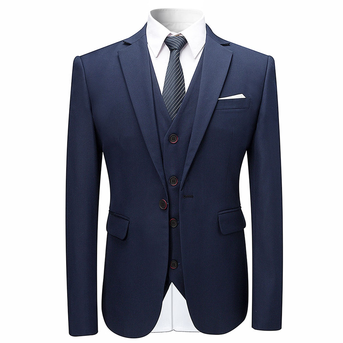 3-Piece Slim Fit Solid Color Jacket Smart Wedding Formal Suit Dark Blue
