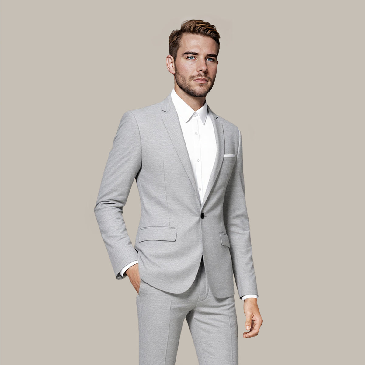 Men's Grey Single-Button Casual Blazer