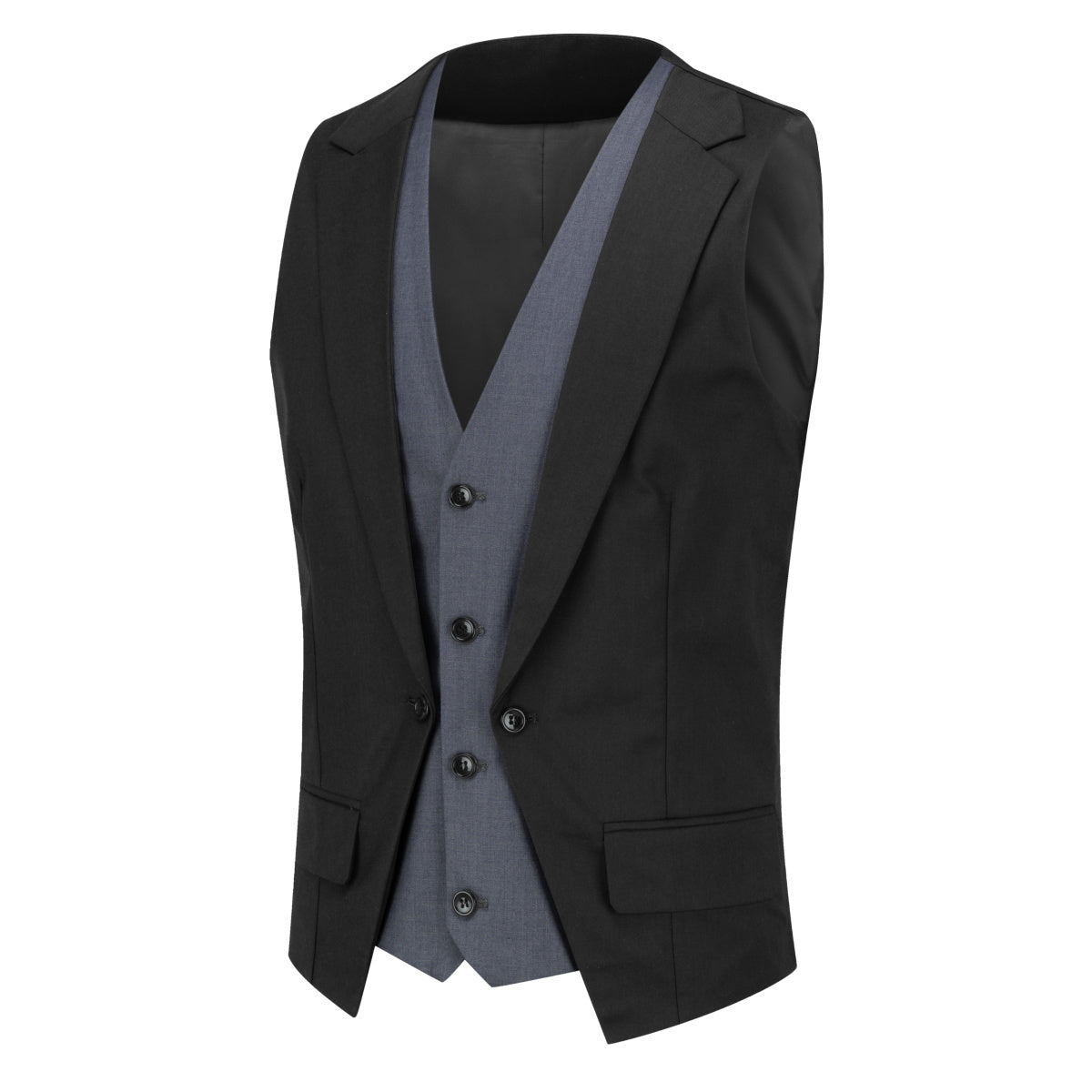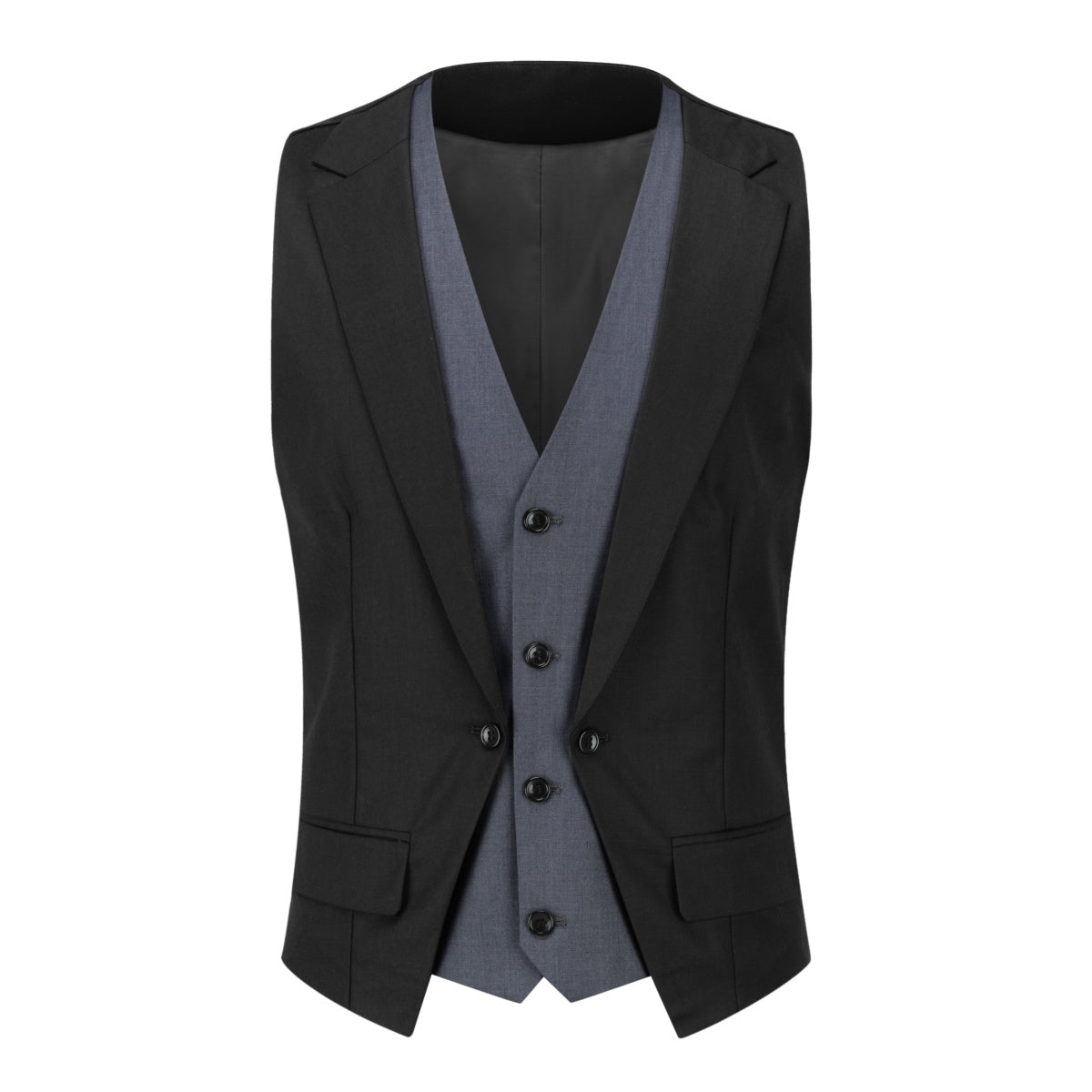 Men's Notched Lapel Patchwork Vest Black