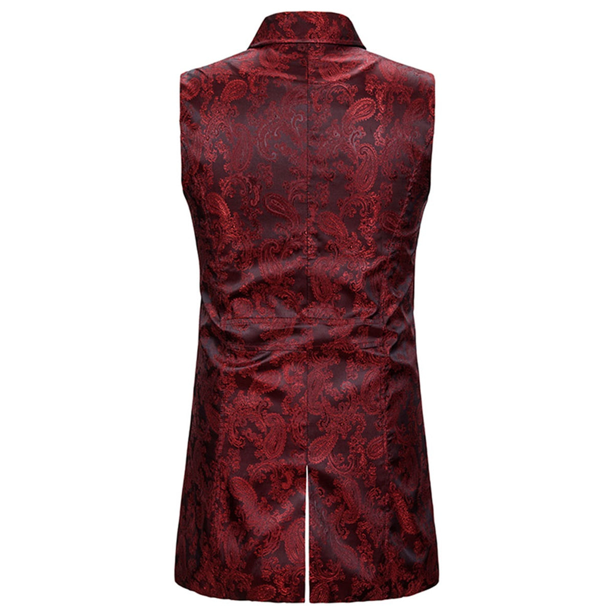 Paisley Dress Vest Floral Sleeveless Tailcoat Maroon