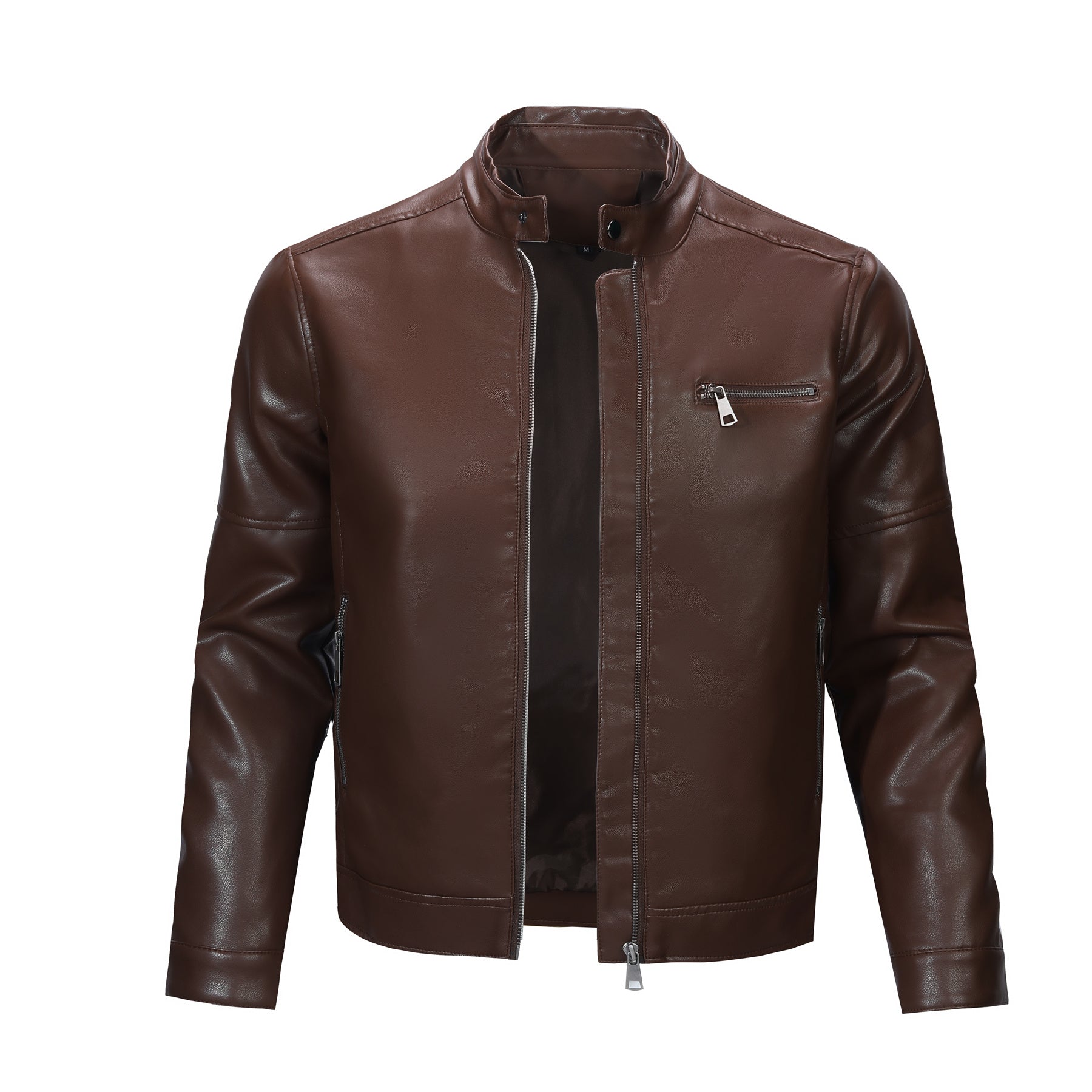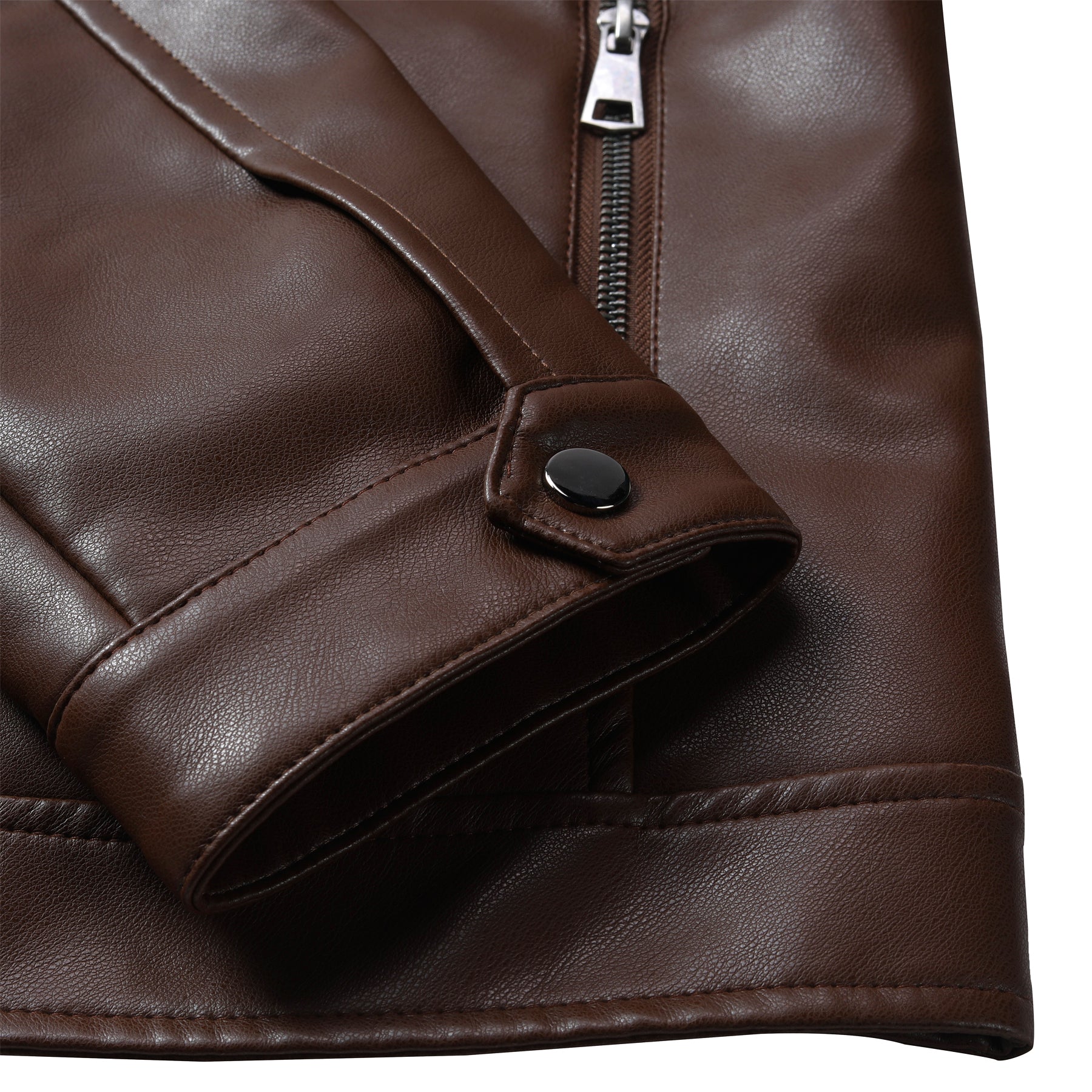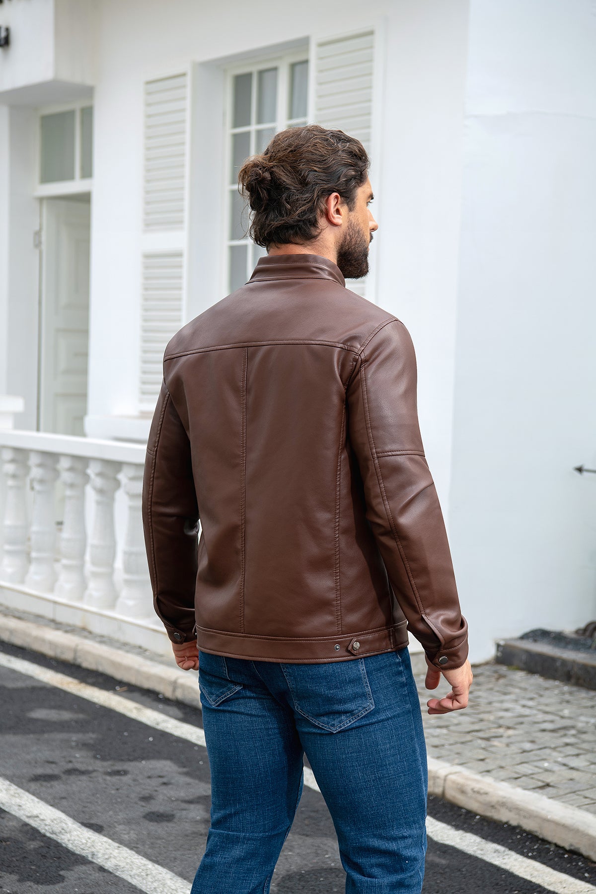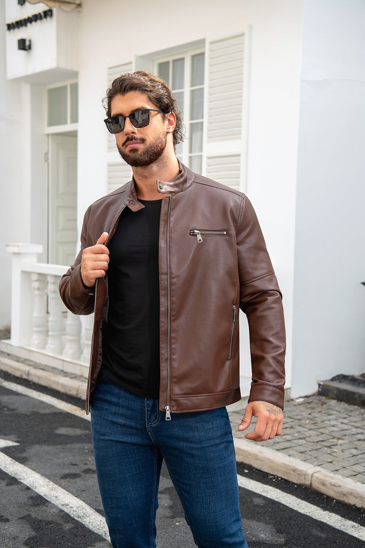 Men's Leather Jacket Casual Zip Up Motorcycle Outwear Brown