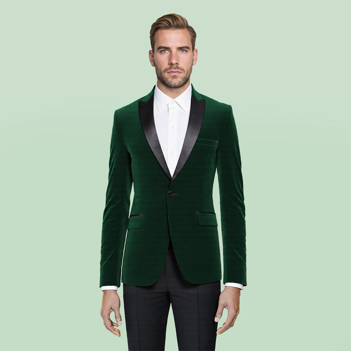 Green Velvet Fashion Blazer Pleuche Tuxedo Jacket