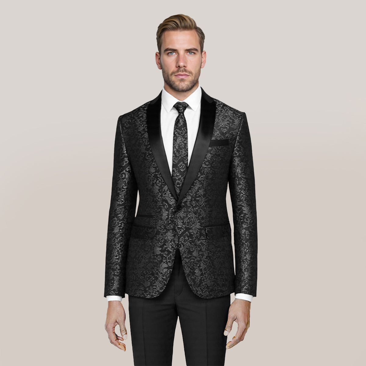 Men's Floral Jacquard Dress Suit Jacket Printed Tux Blazer Black