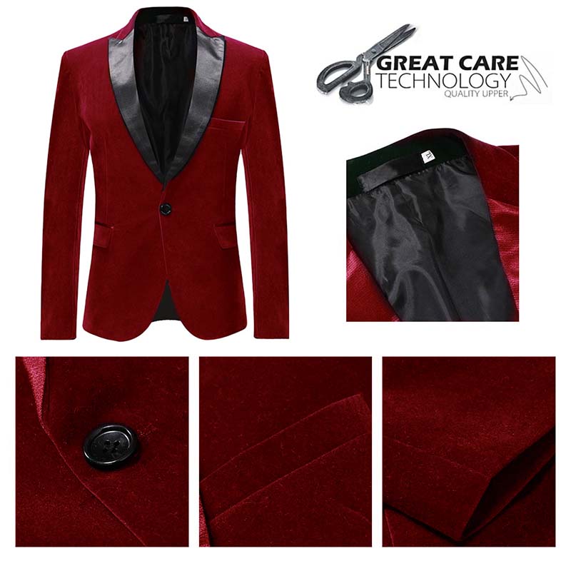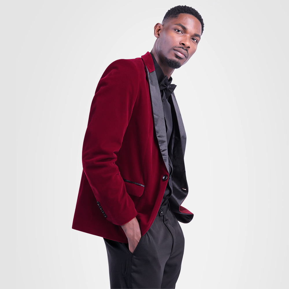 Maroon Velvet Fashion Blazer Pleuche Tuxedo Jacket