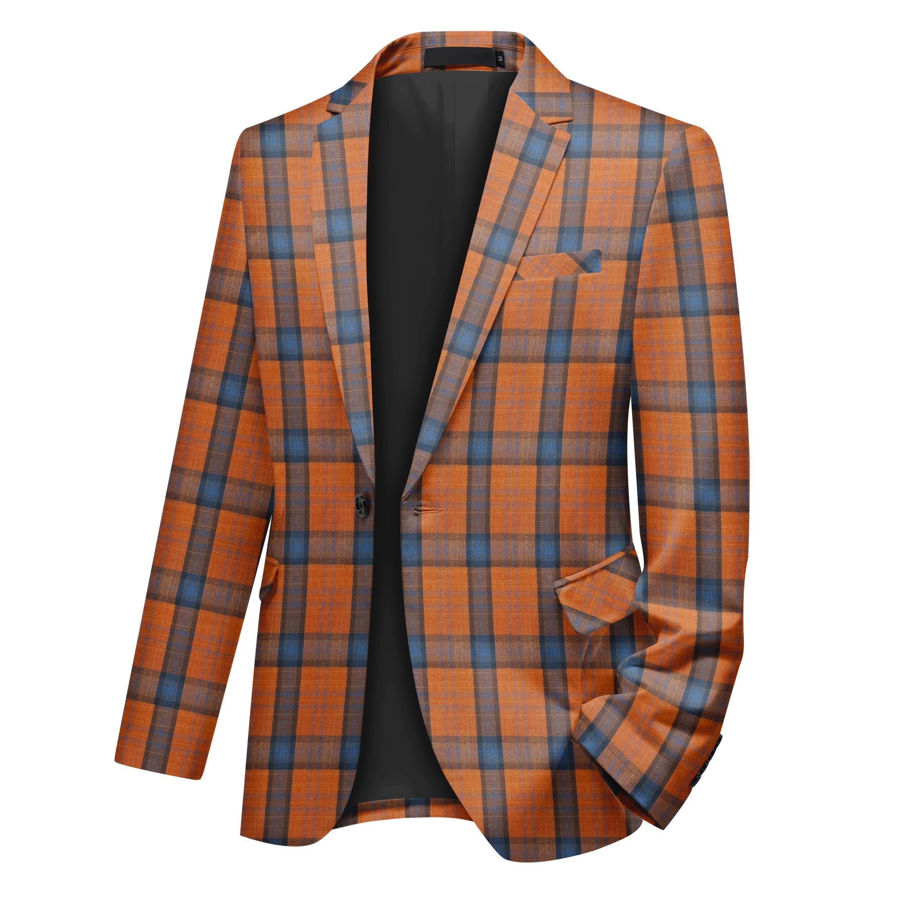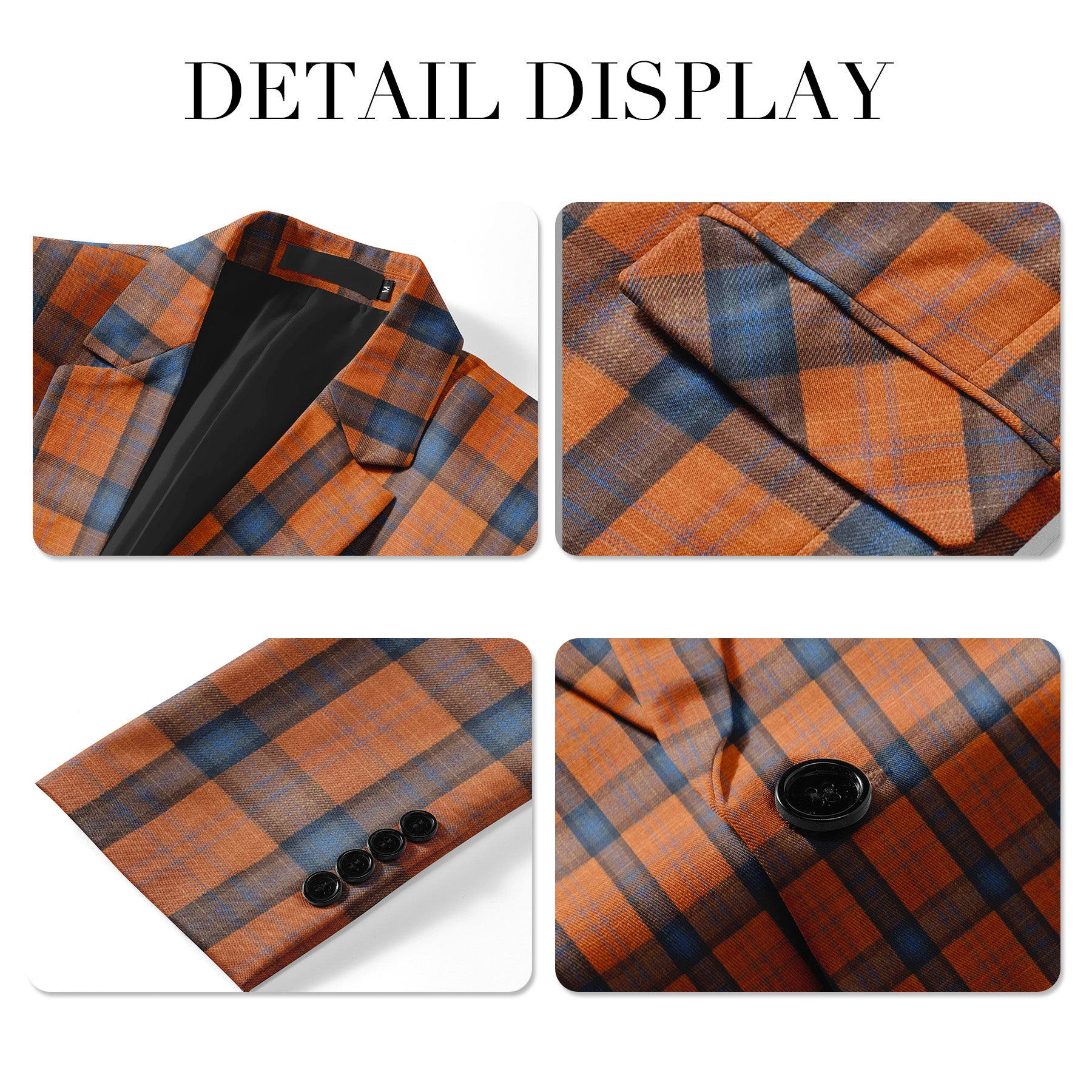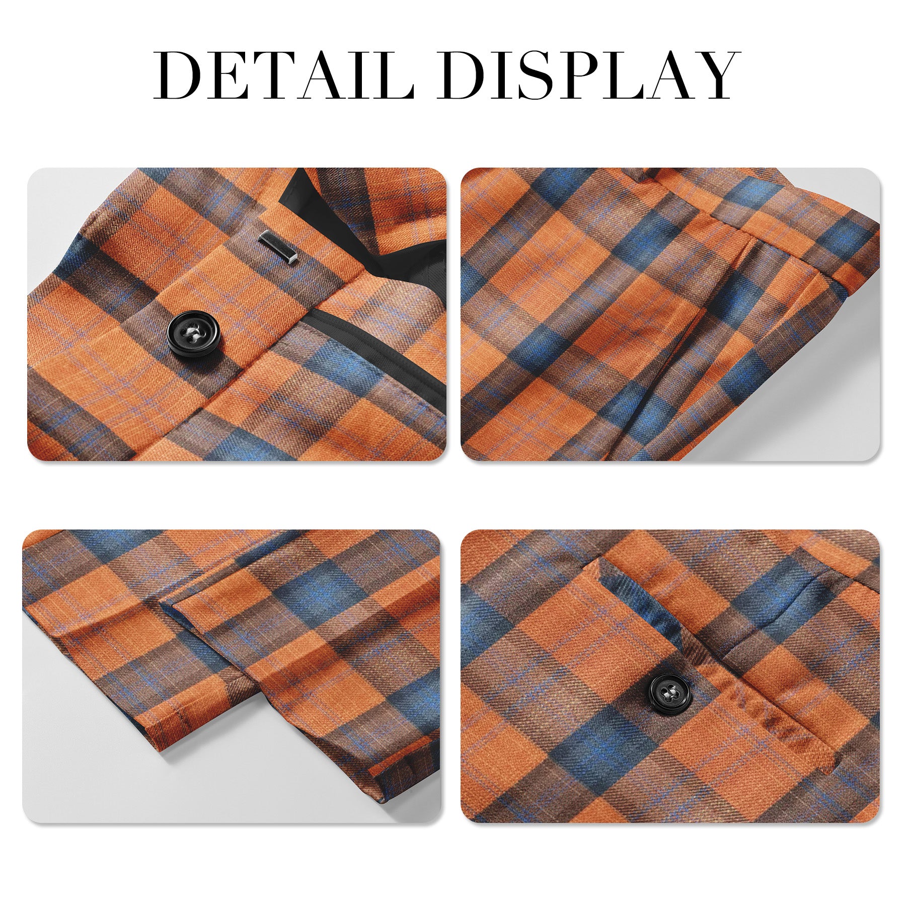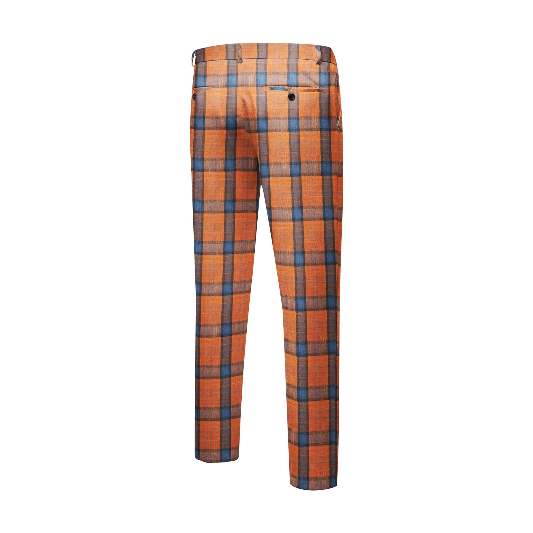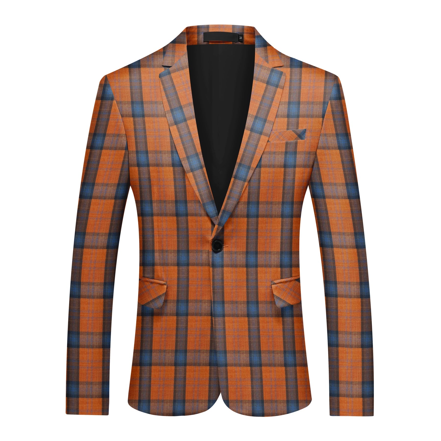 Mens 2 PCS Plaid Suits Slim Formal Suit Checkered Orange
