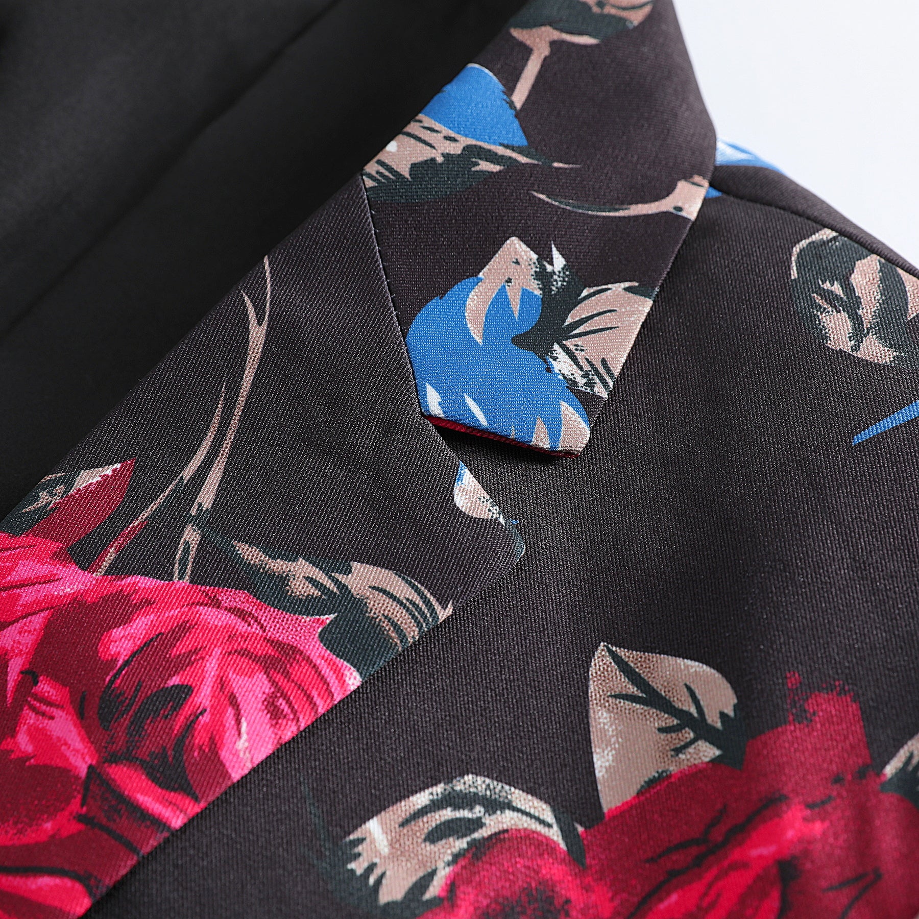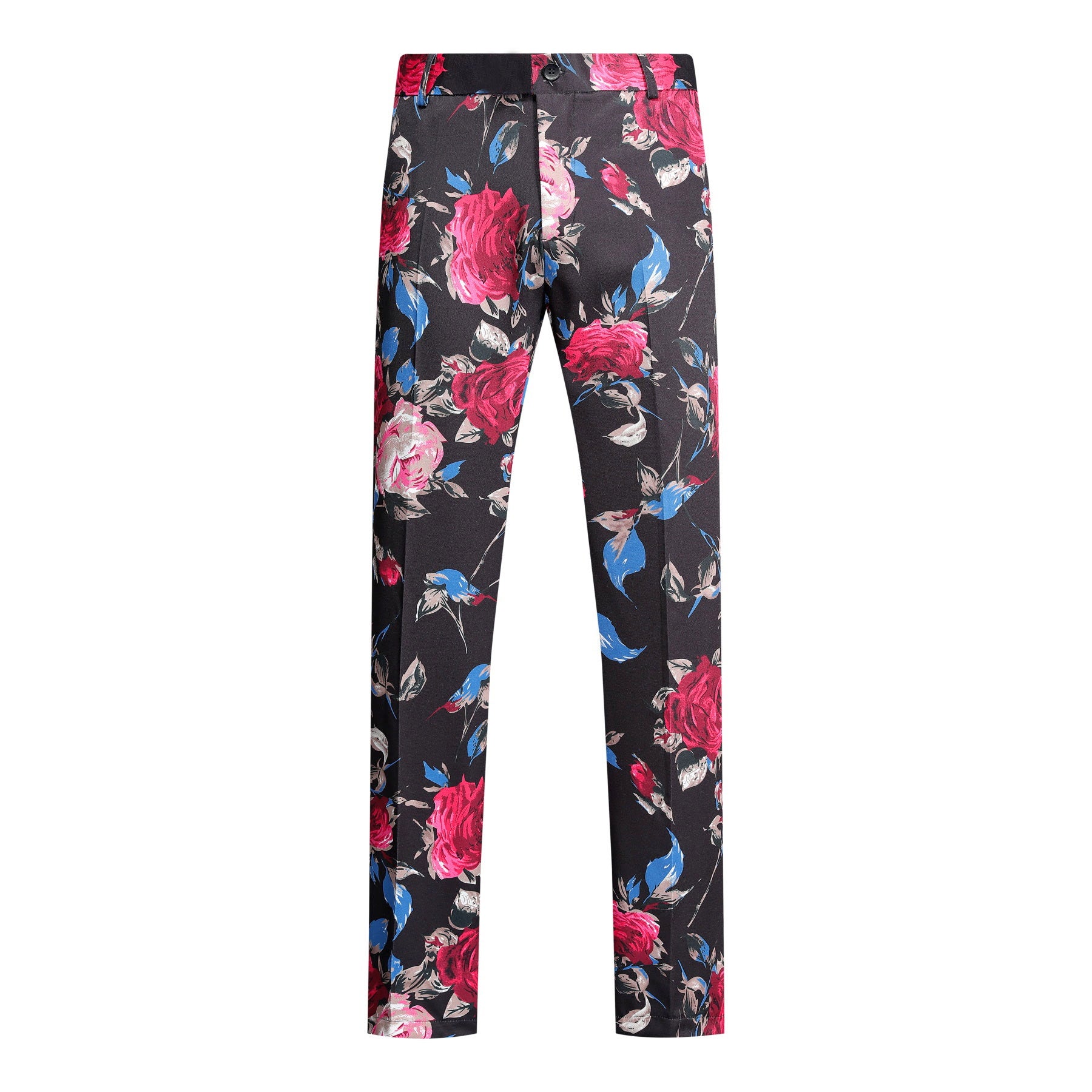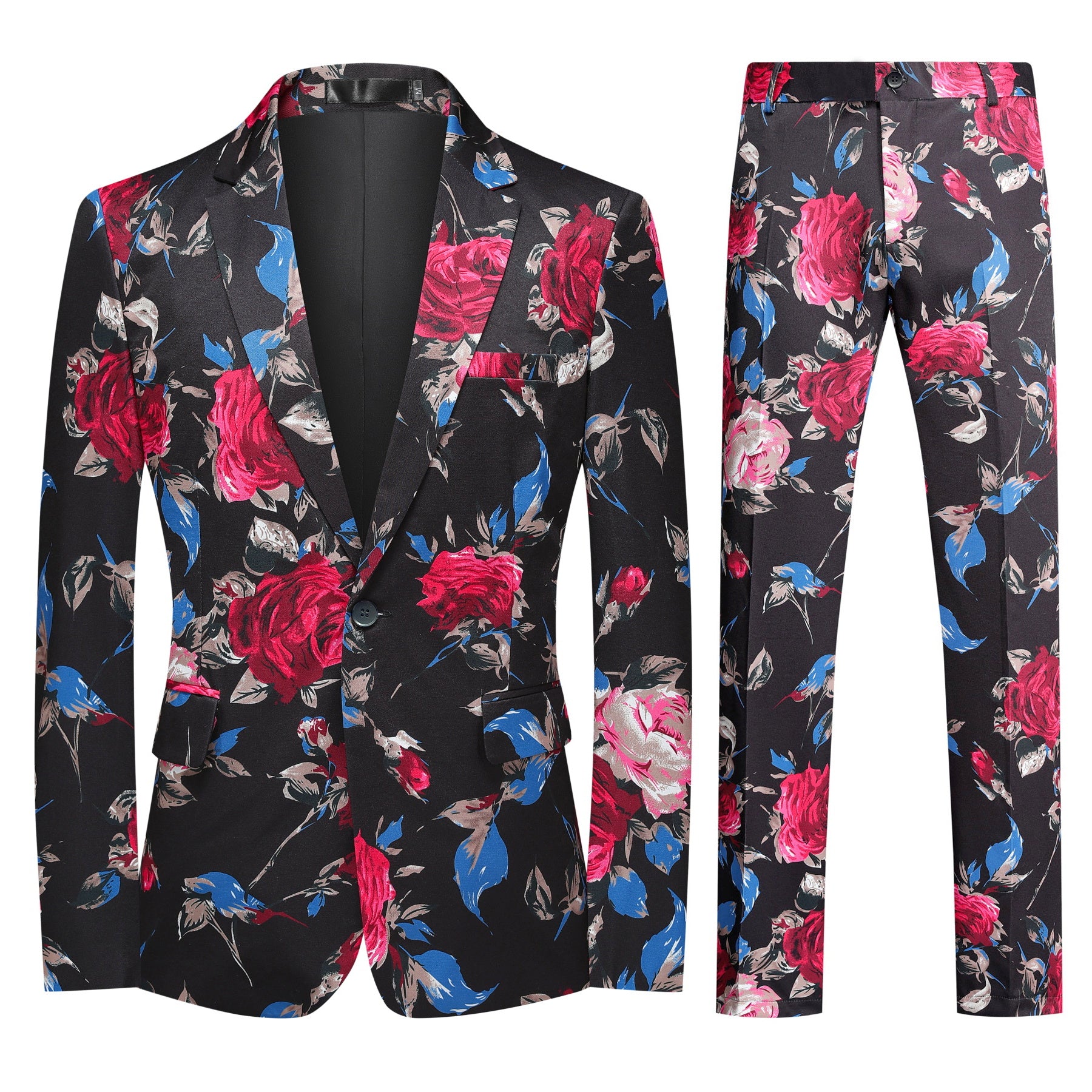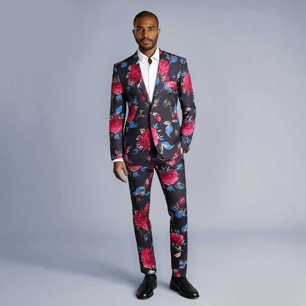 Men's 2-Piece Floral Print Suit Set Black with Red Flowers