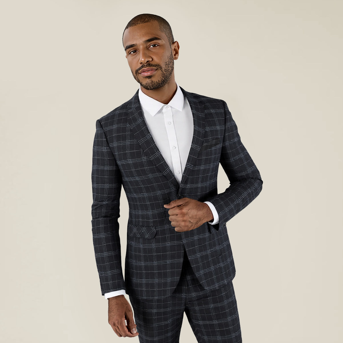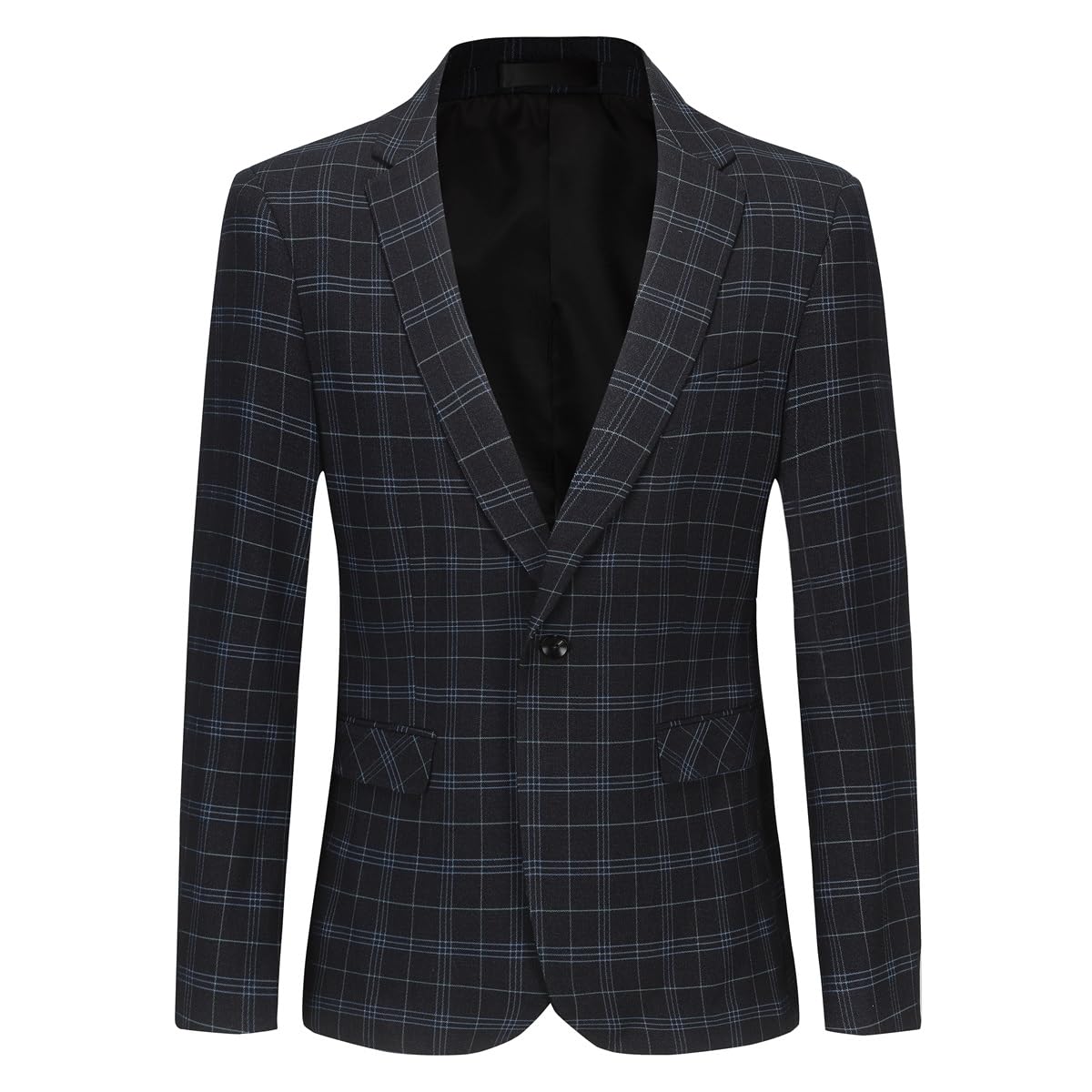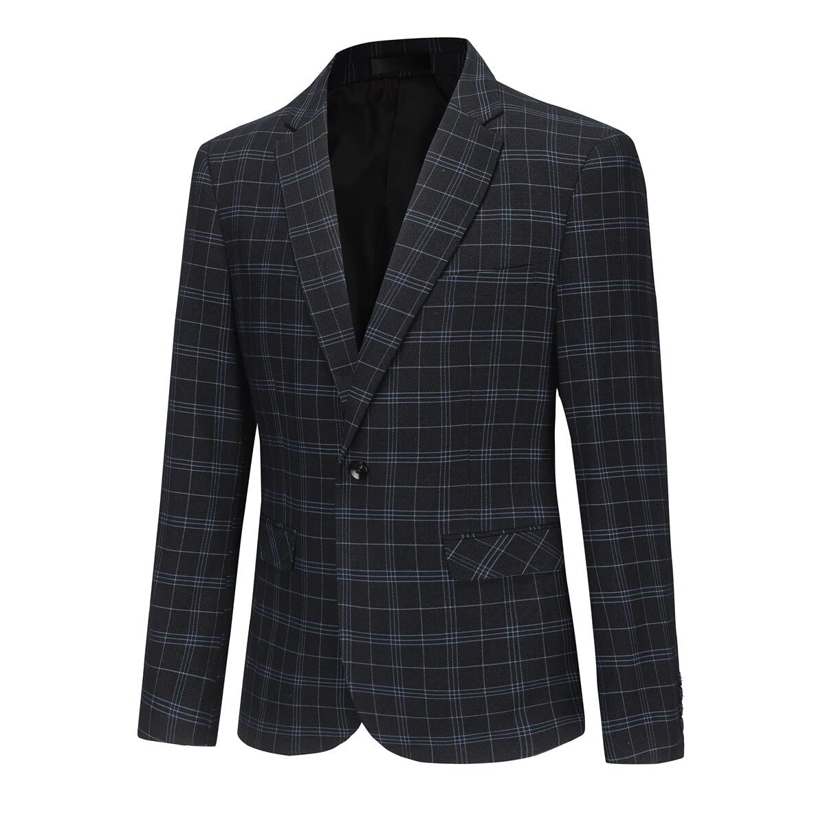 Mens Plaid Suit Blazer Slim 1 Button Wedding Prom Sport Coat Jacket Black