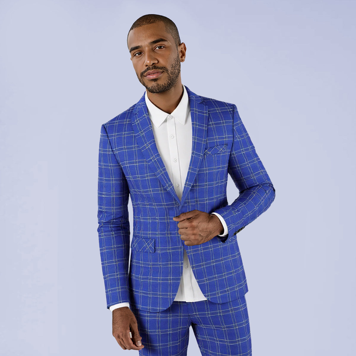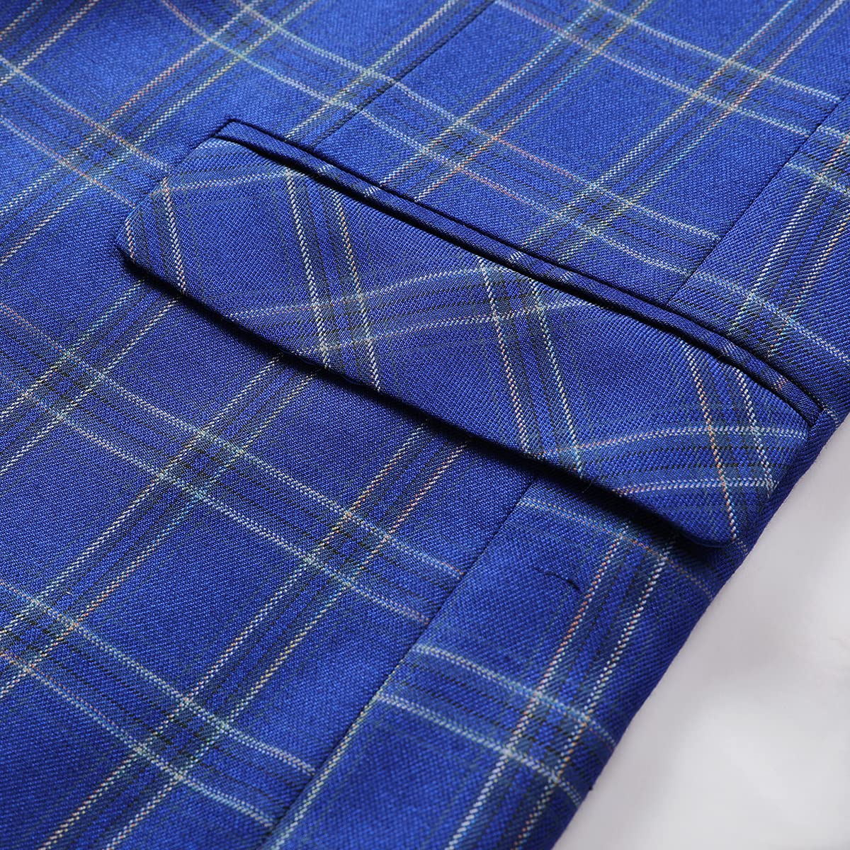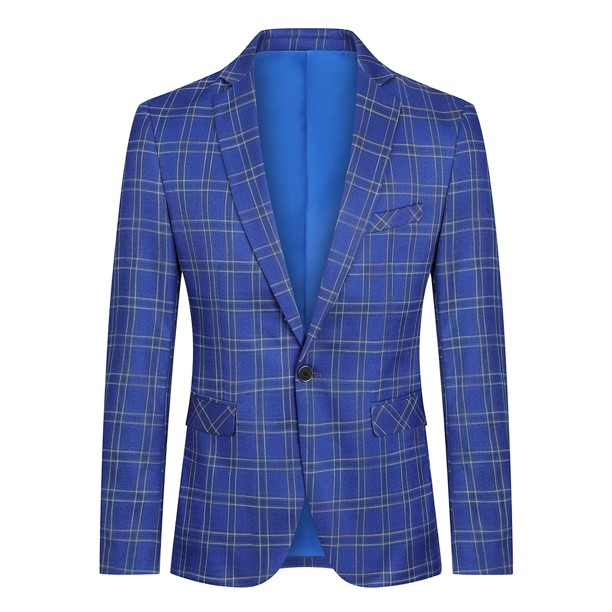 Mens Plaid Suit Blazer Slim 1 Button Wedding Prom Sport Coat Jacket Blue