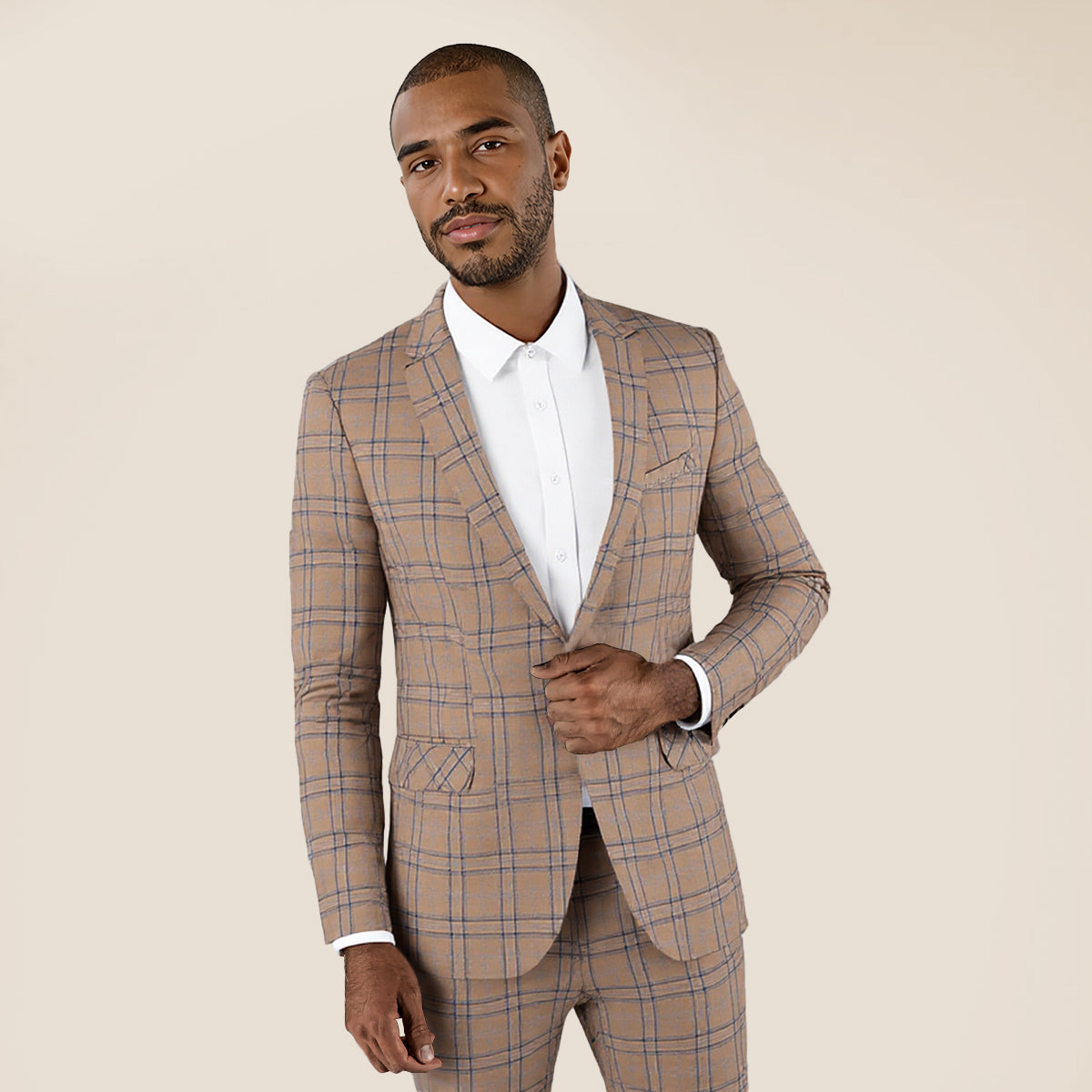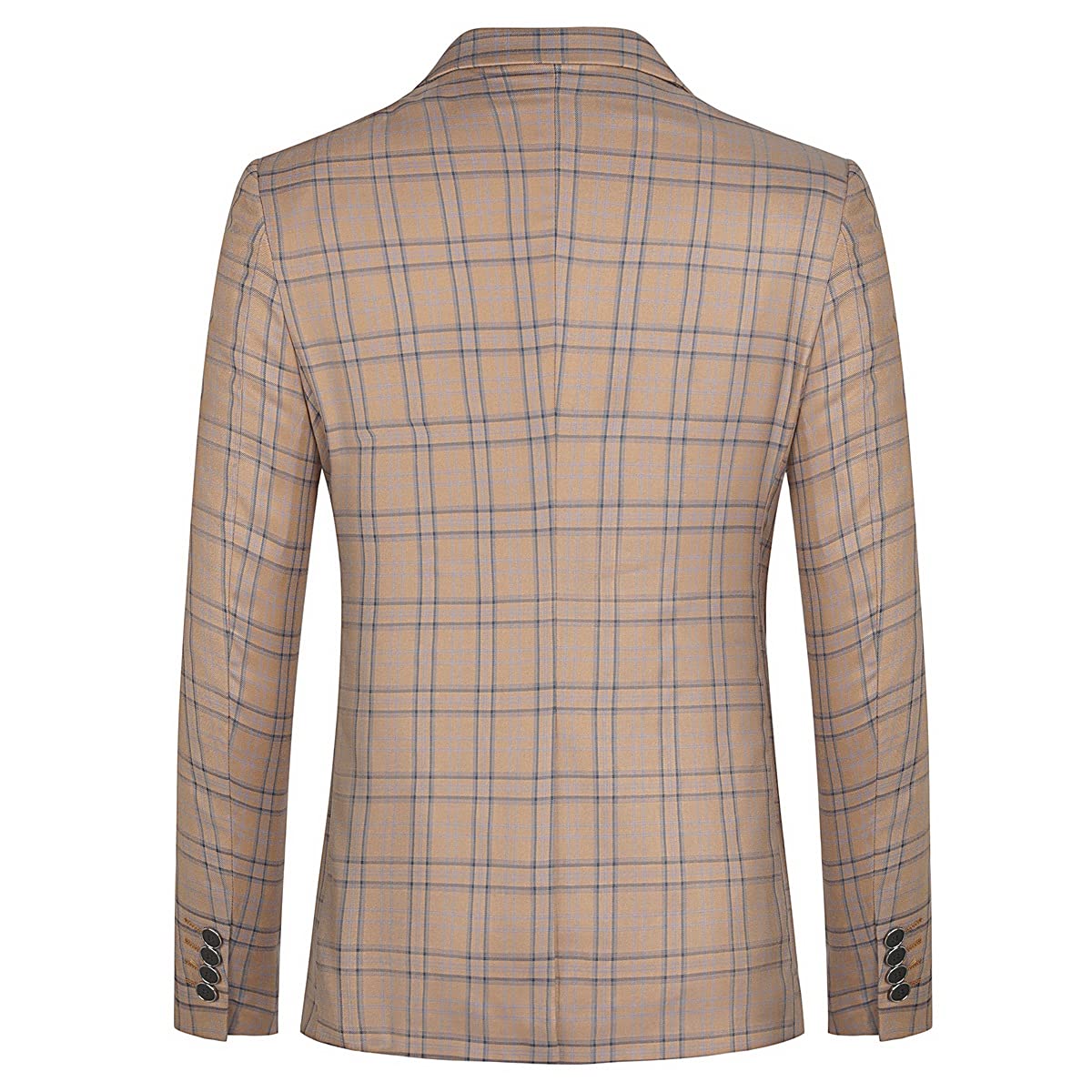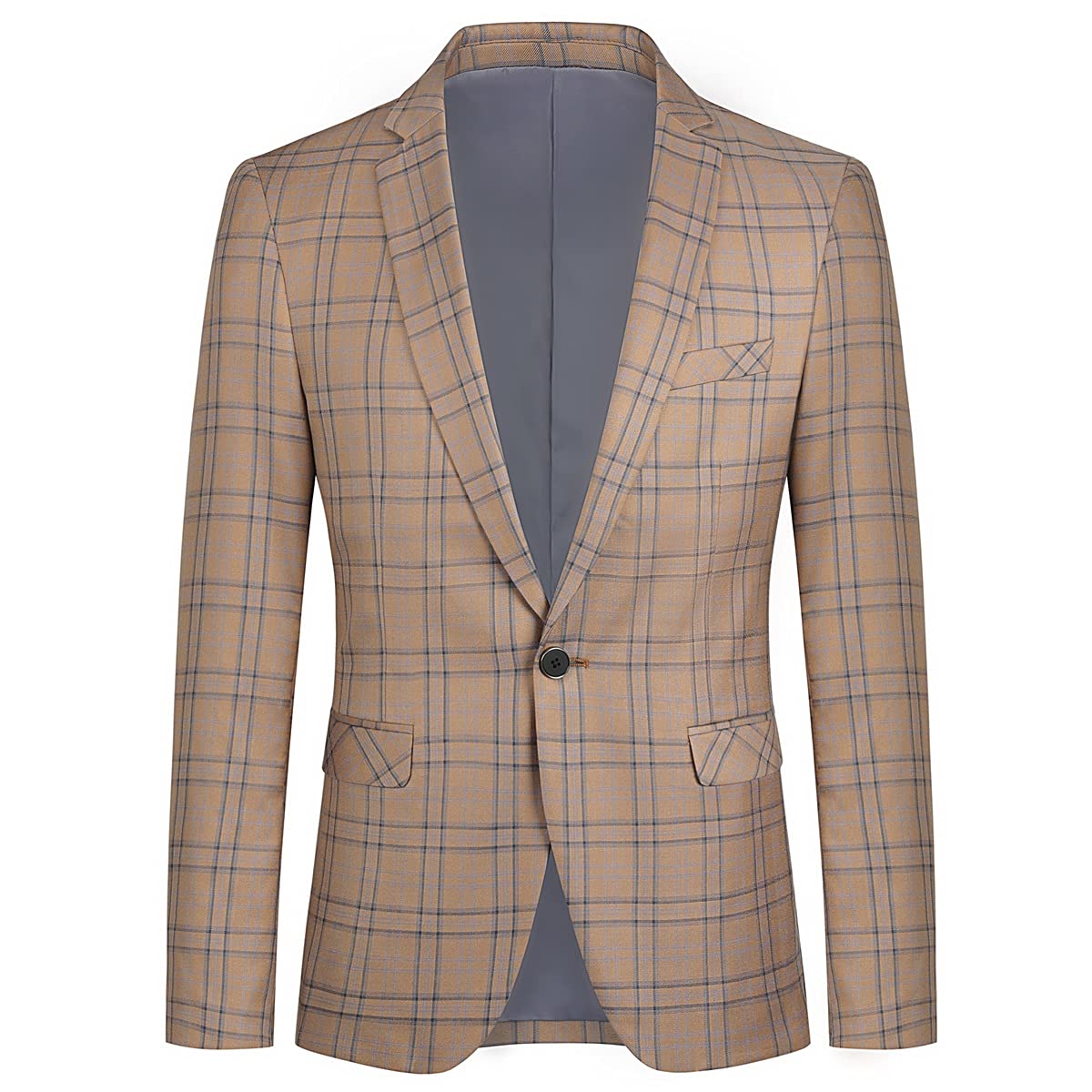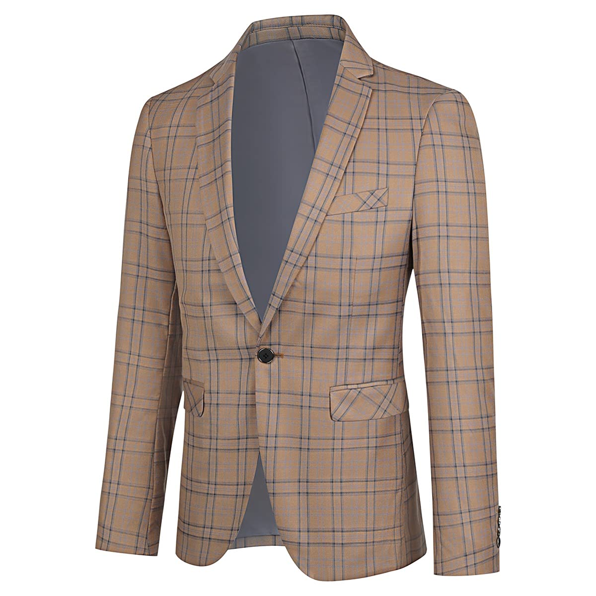 Mens Plaid Suit Blazer Slim 1 Button Wedding Prom Sport Coat Jacket Dark Khaki
