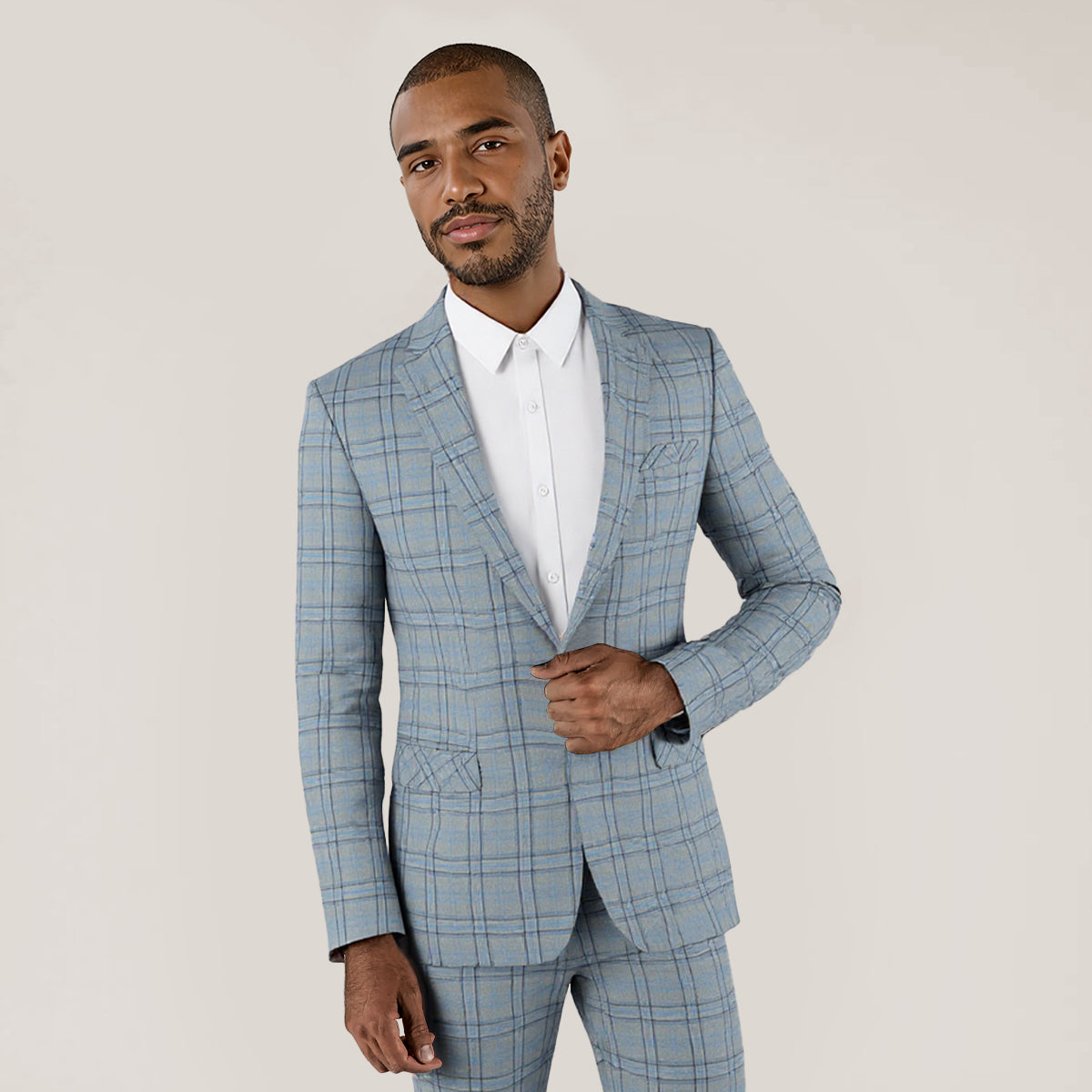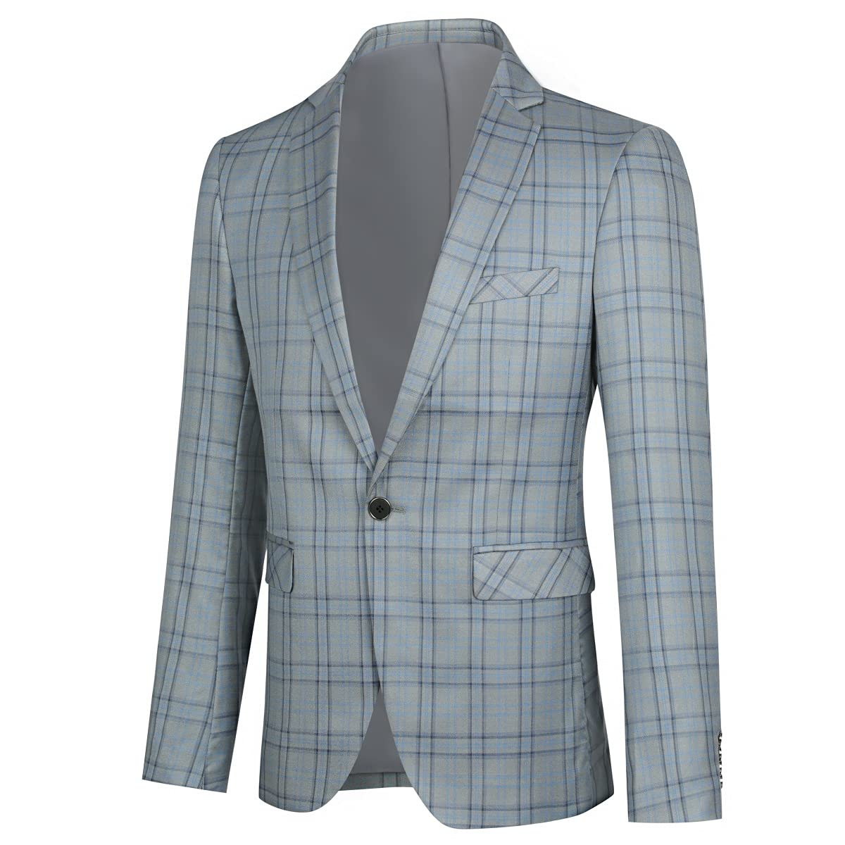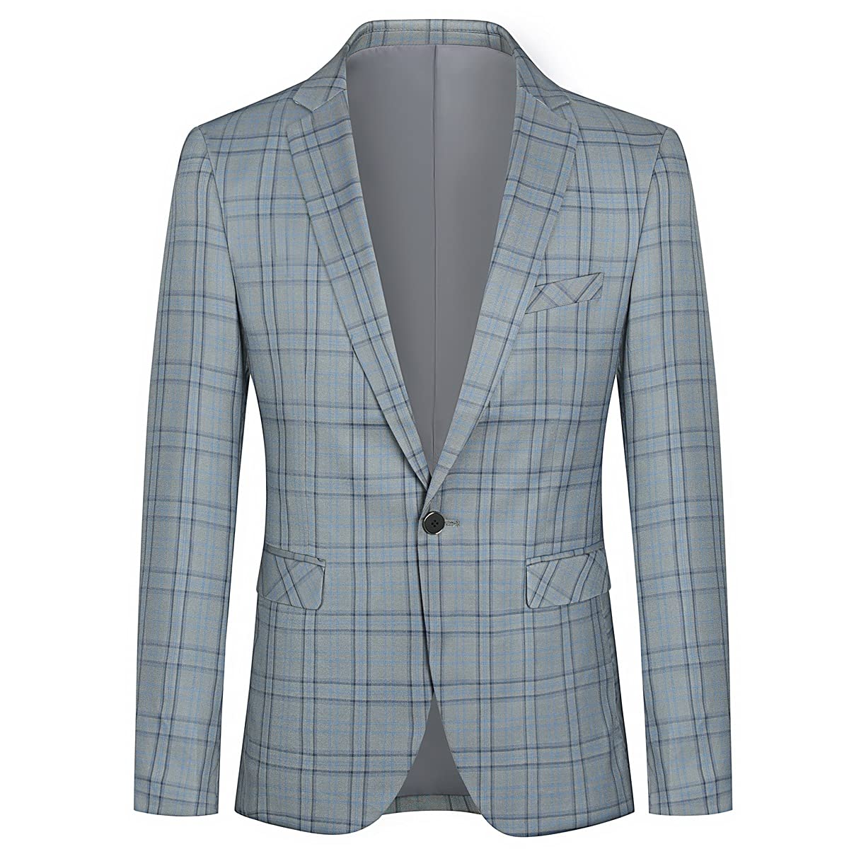 Mens Plaid Suit Blazer Slim 1 Button Wedding Prom Sport Coat Jacket Grey