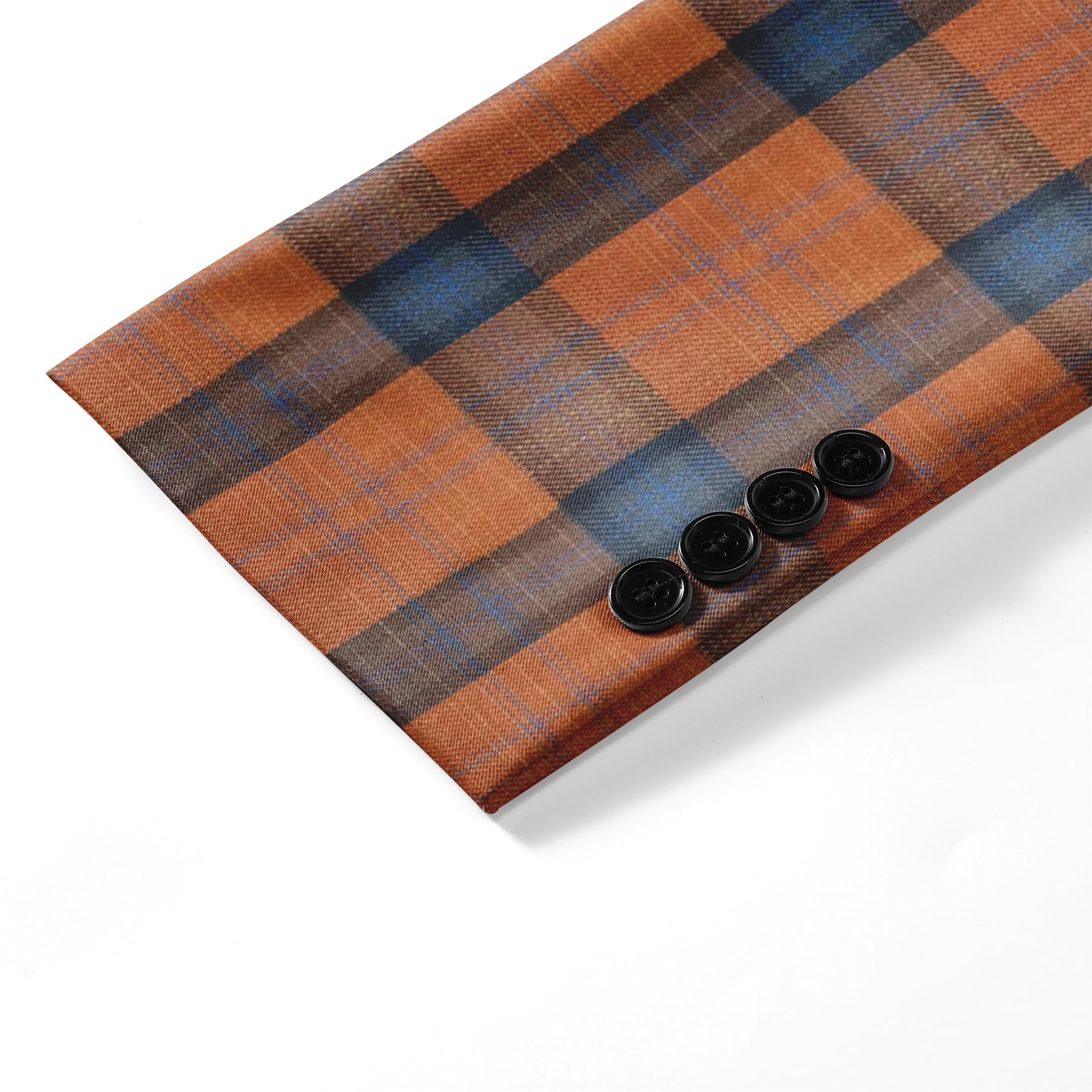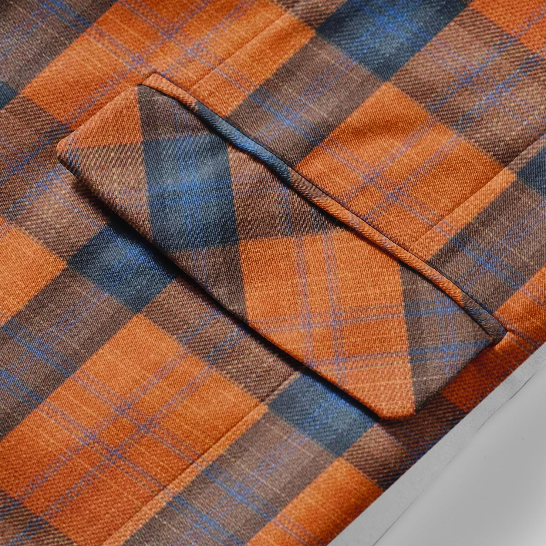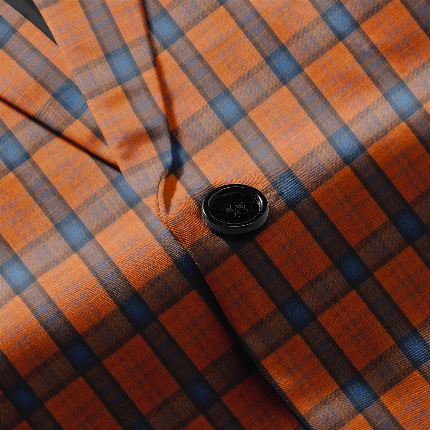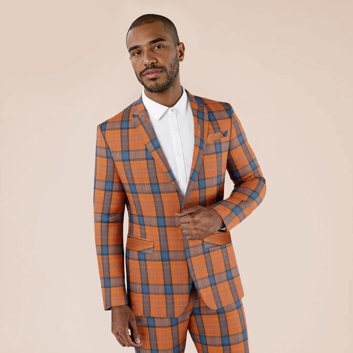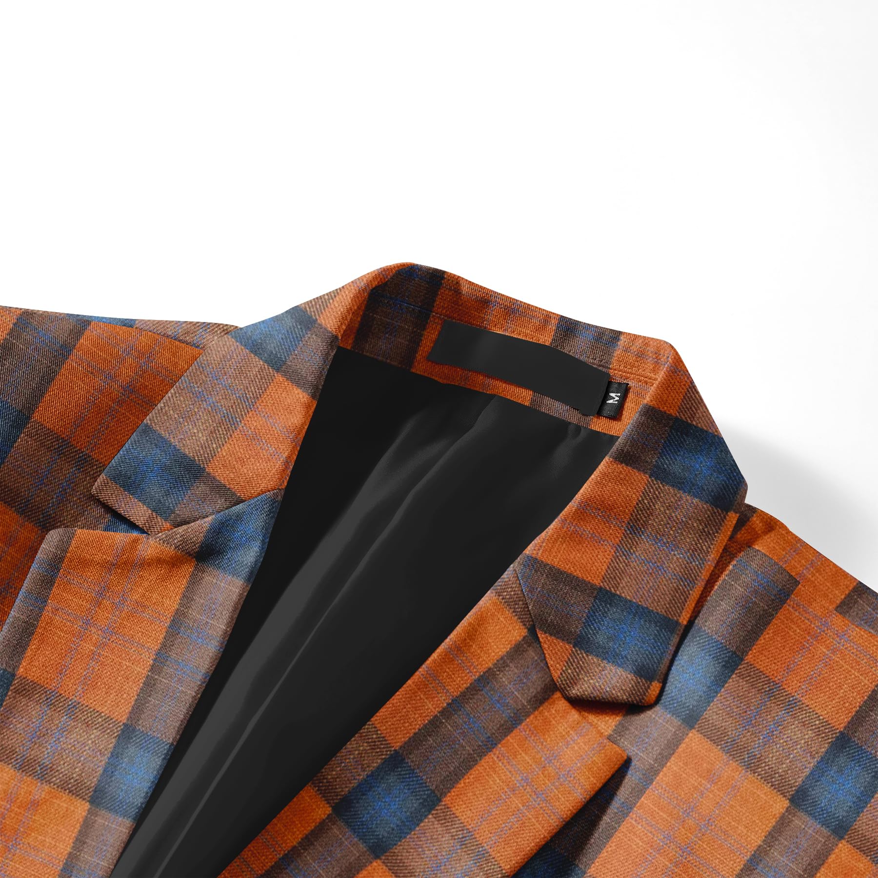 Mens Plaid Suit Blazer Slim 1 Button Wedding Prom Sport Coat Jacket Orange Blue