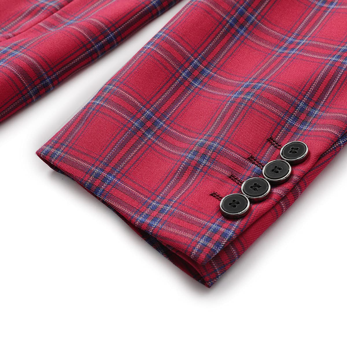- Material and Size: Elegant plaid suit blazer in premium polyester with comfy full lining; The fit was perfect to size, and when coming to choose the suit size, please check the detailed size in the second product picture, not the Amazon size chart beside the size button