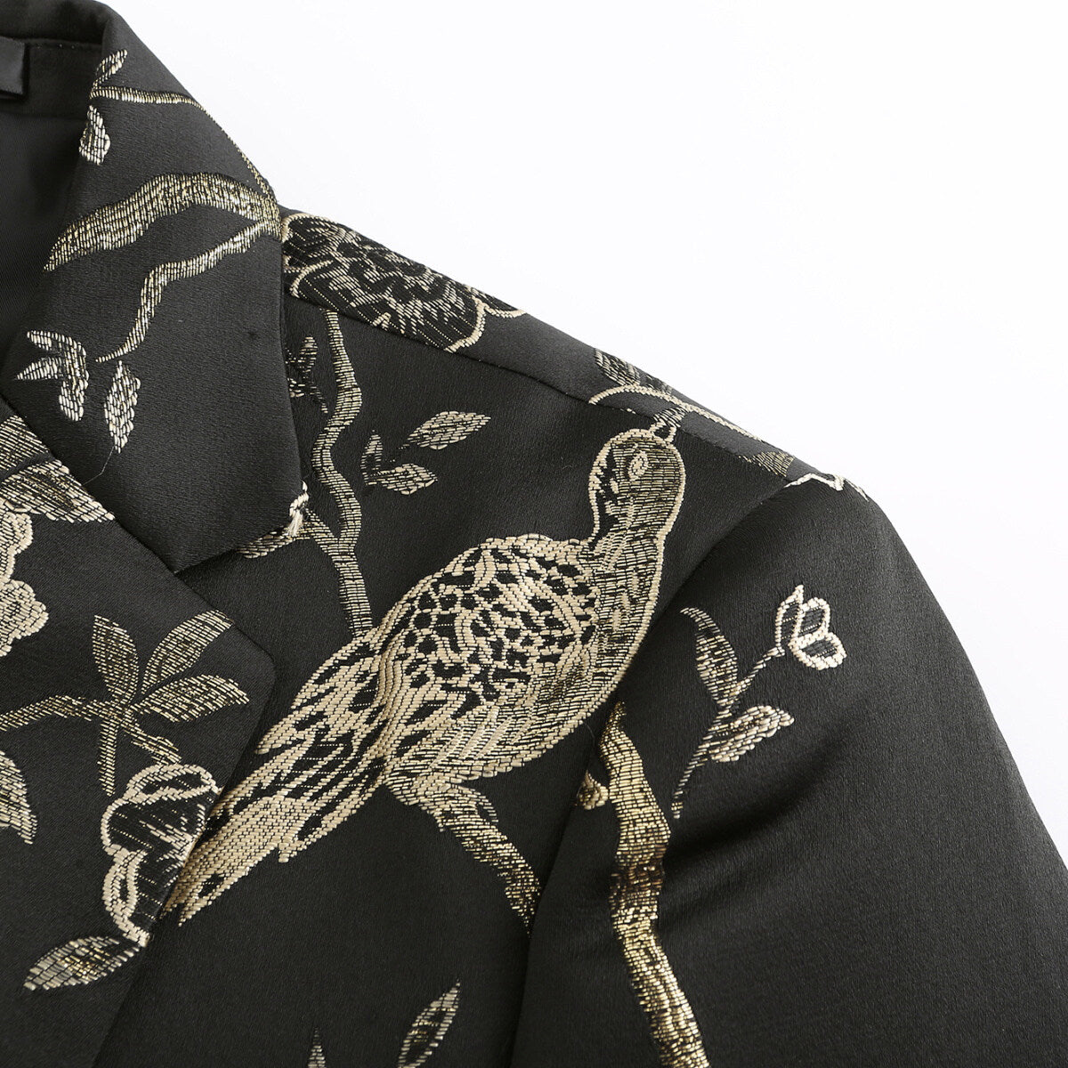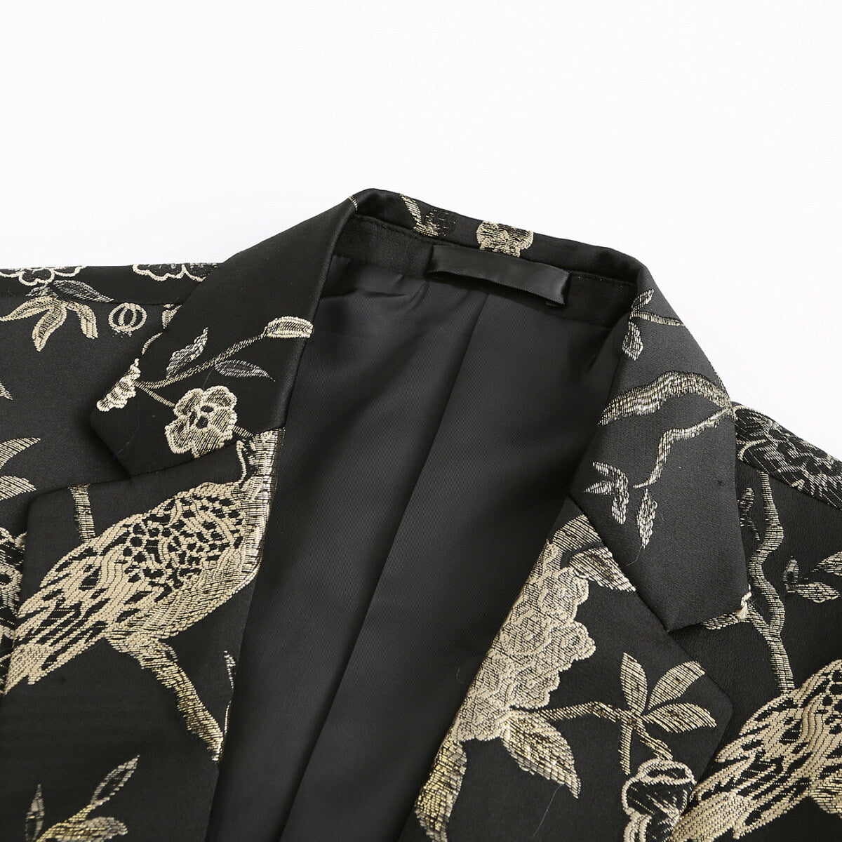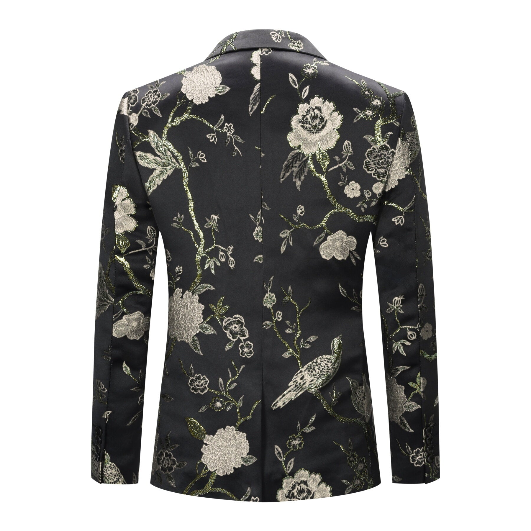 Men's One Button Notched Lapel Embroidered Blazer Silver