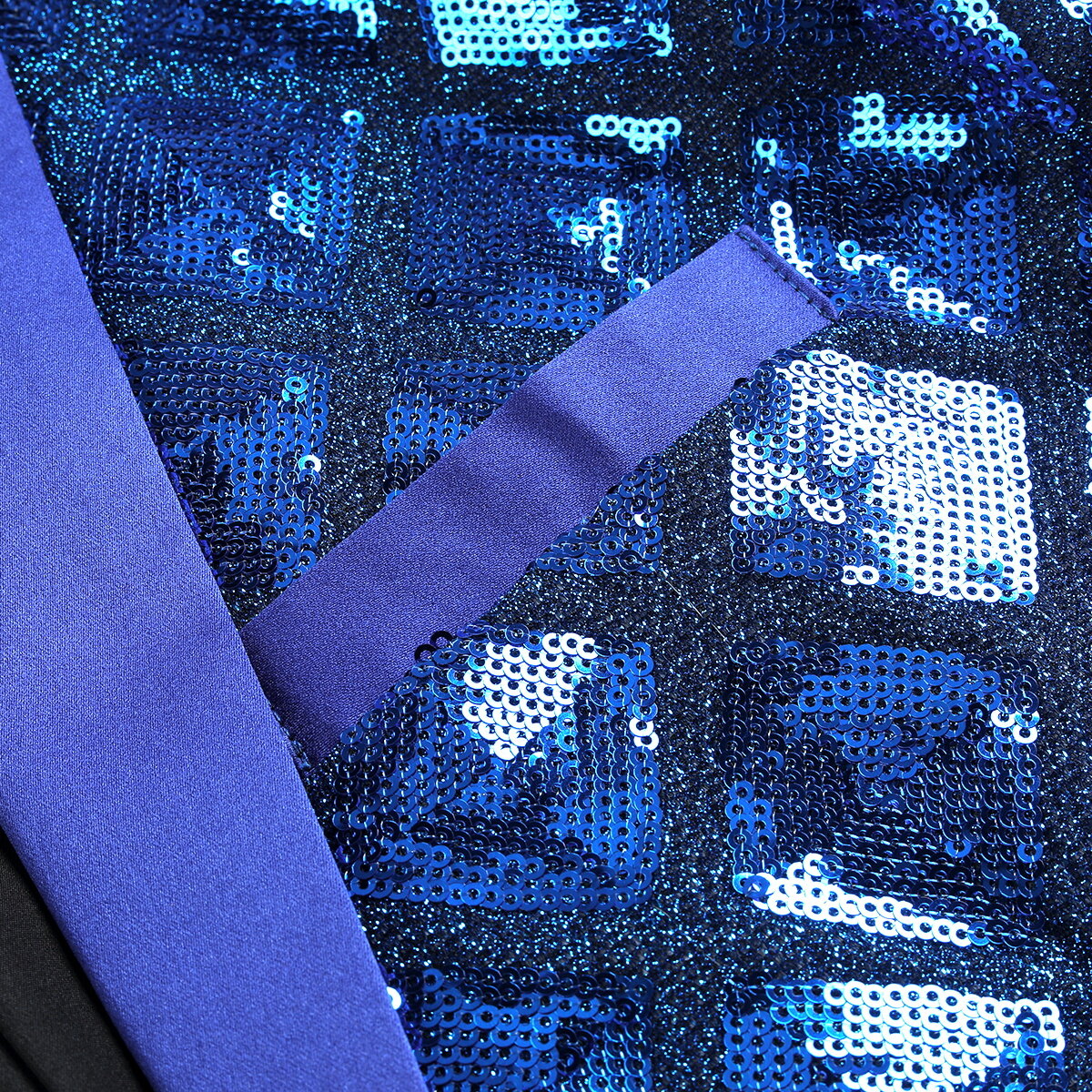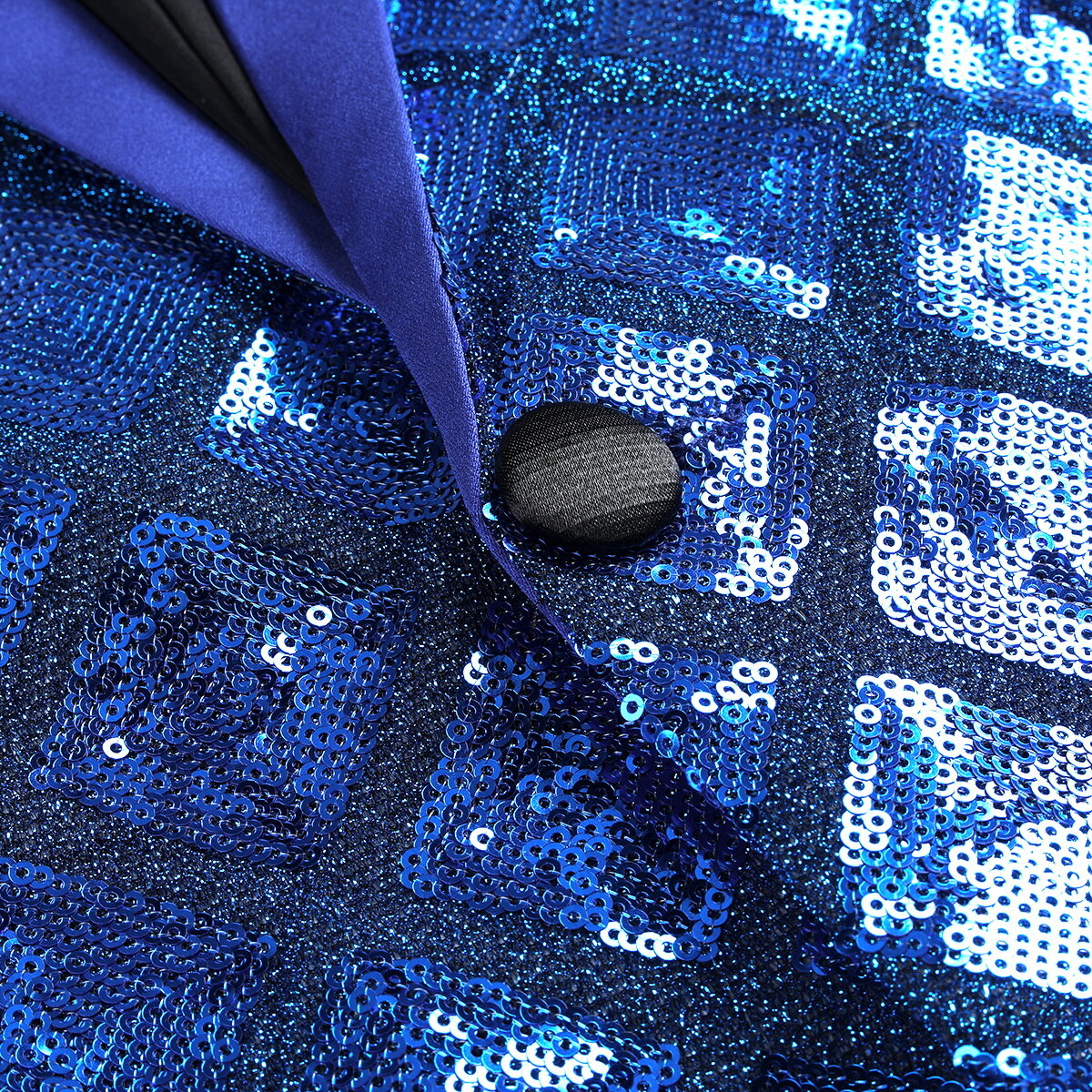 Men's One Button Plaid Sequin Blazer Blue