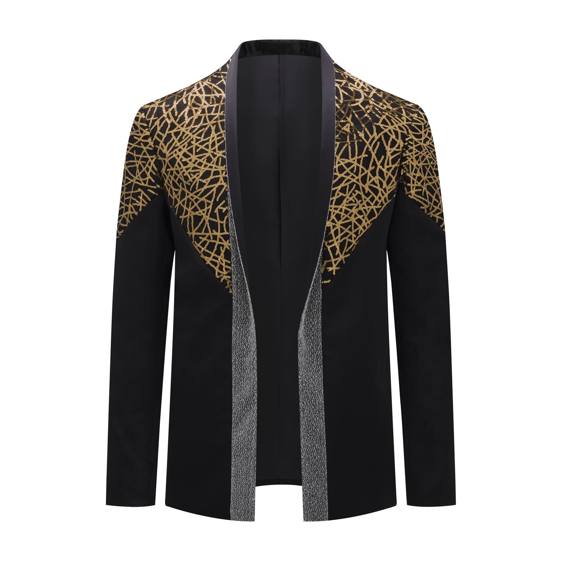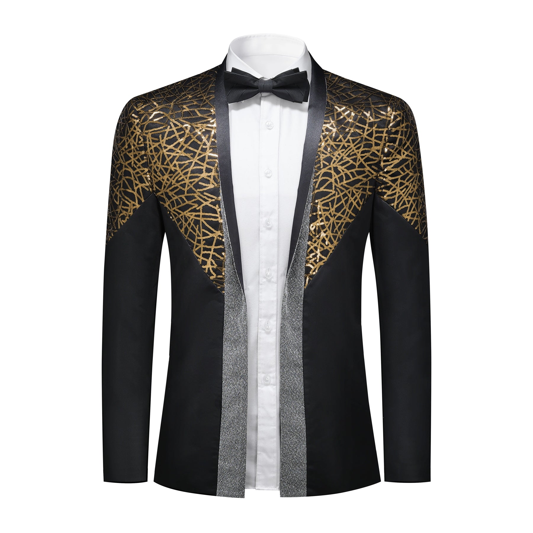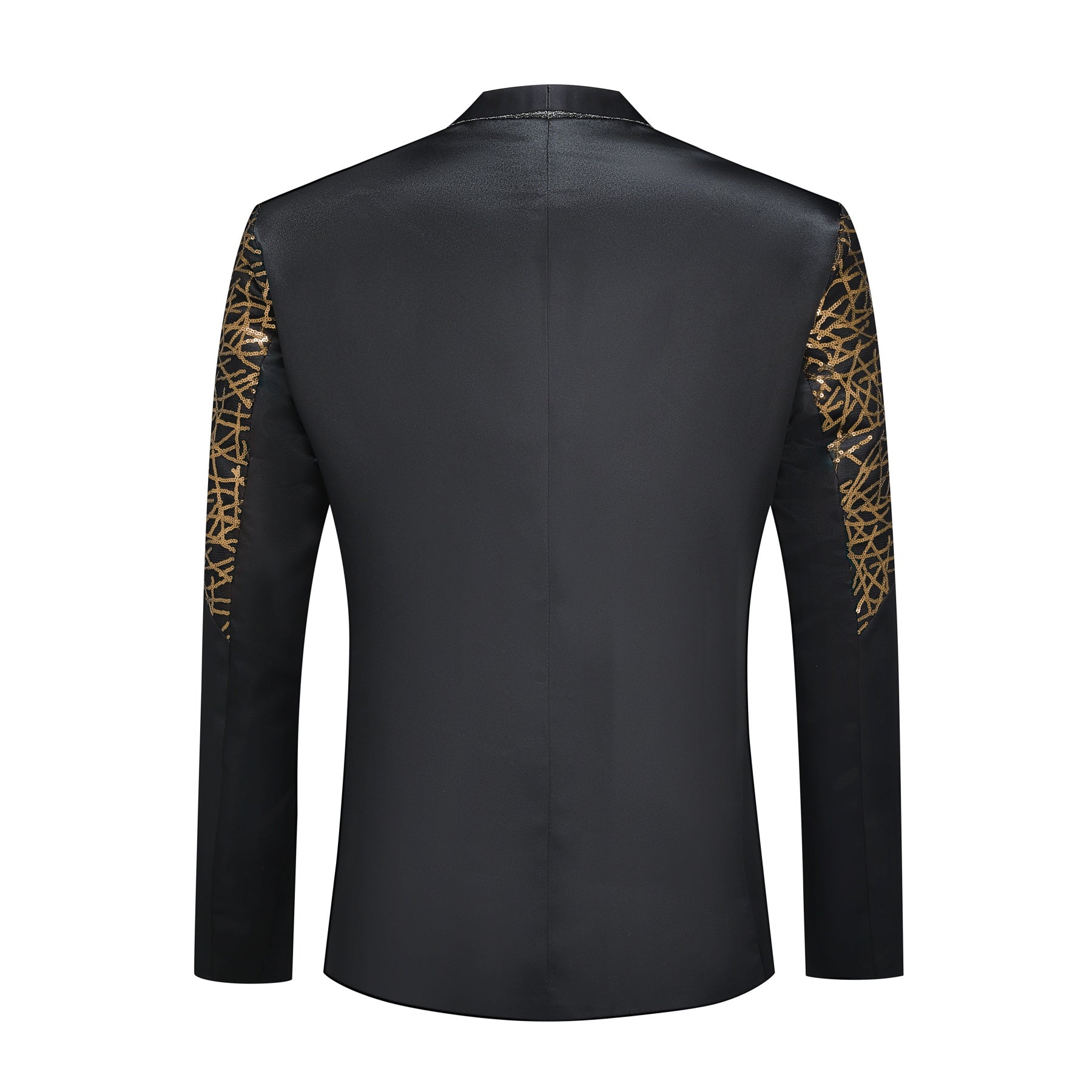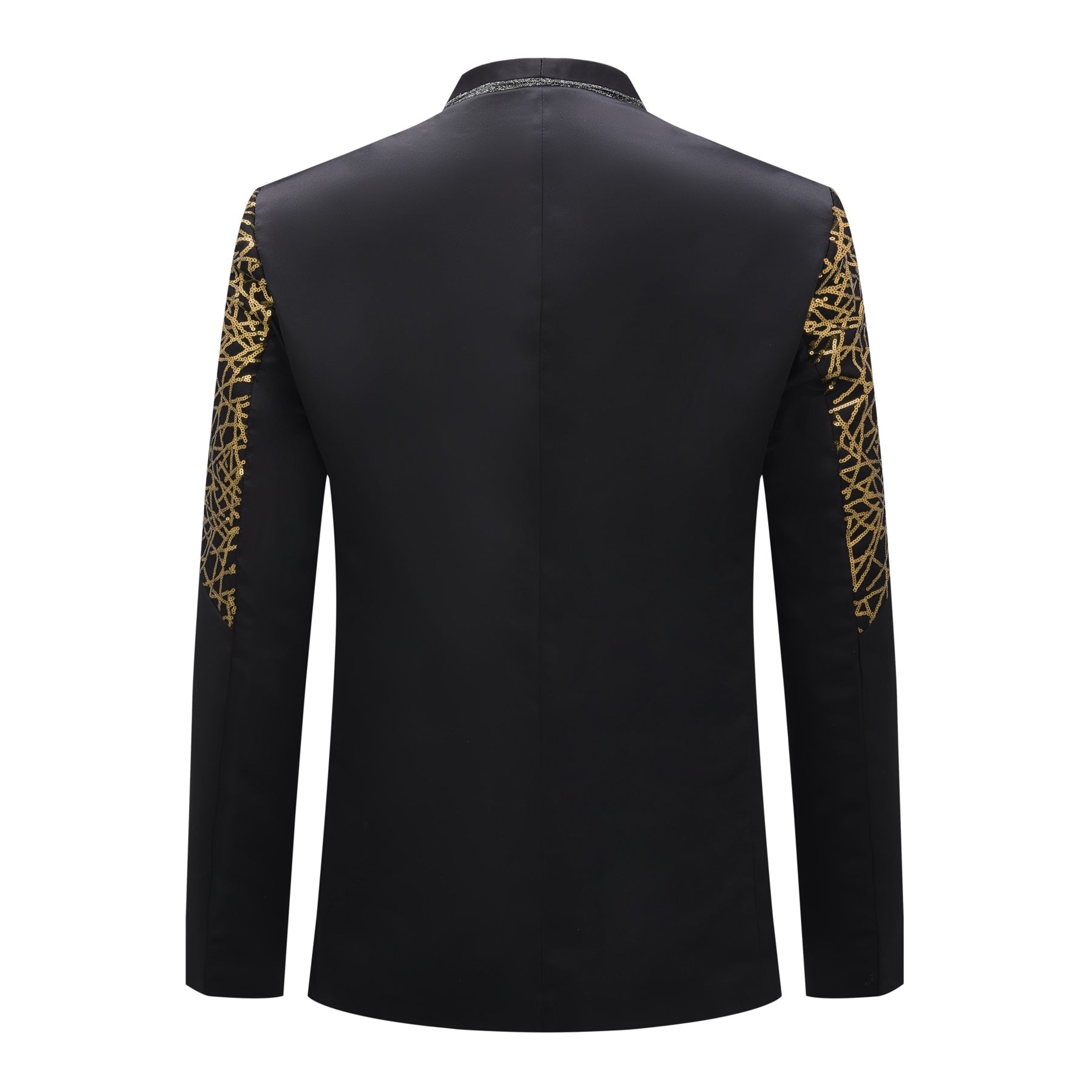 Men's Sequined Stand Collar Single-Breasted Blazer Gold