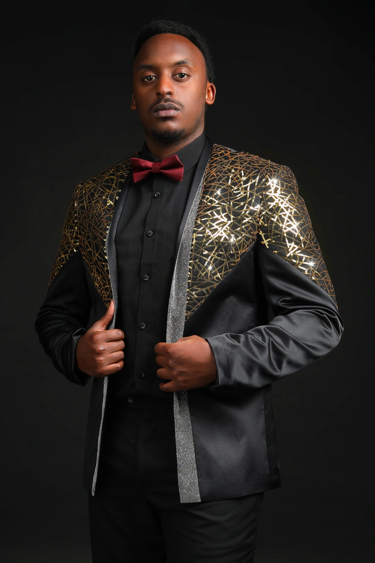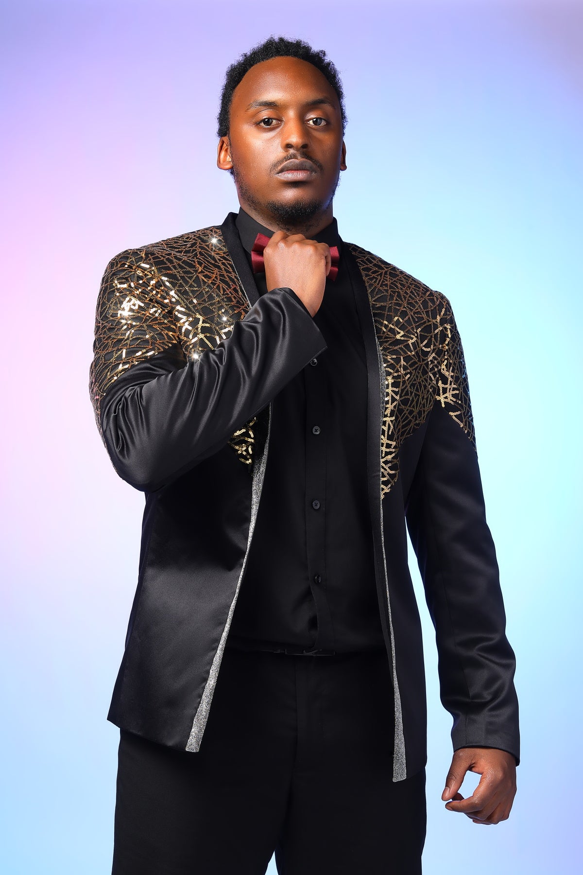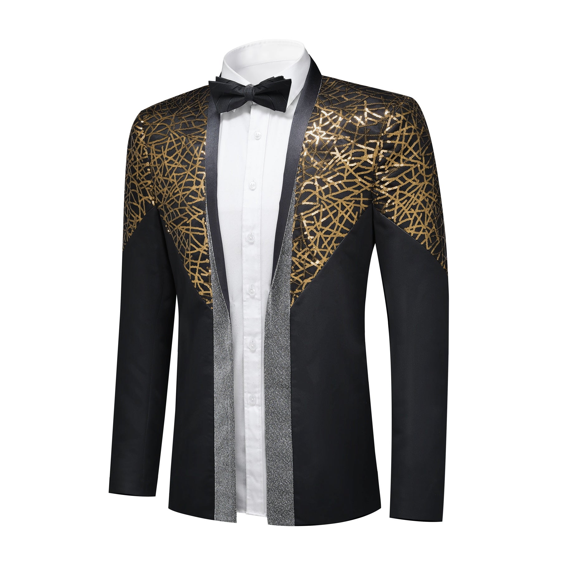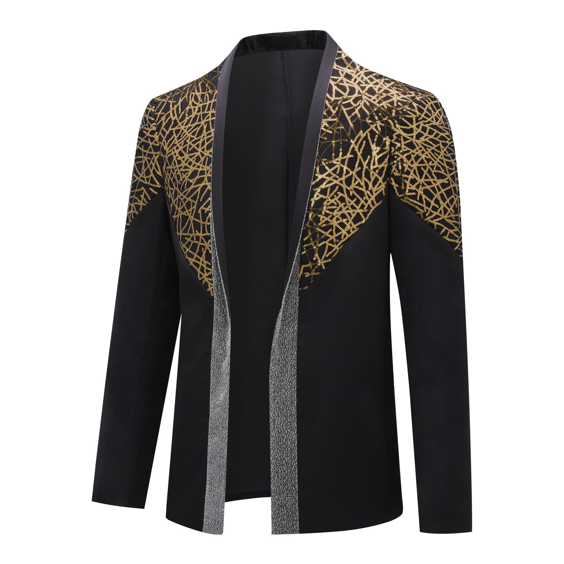 Men's Sequined Stand Collar Single-Breasted Blazer Gold