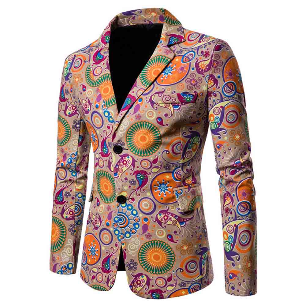 Single-breasted, Two Buttons, Notched Lapel, Fashionable Random Cutting Printed Patterns Design.