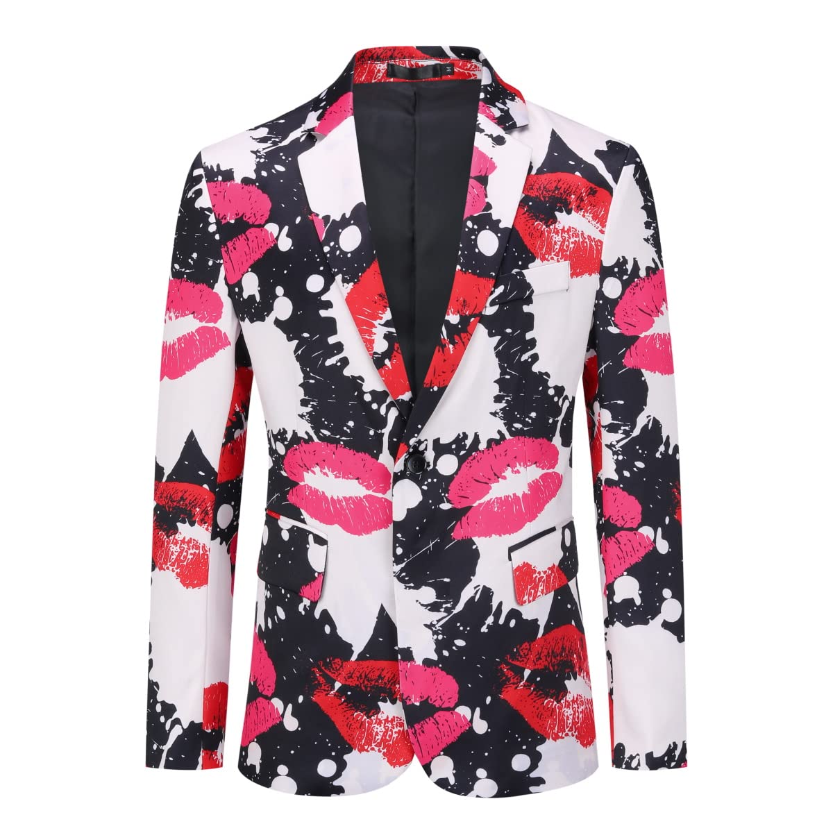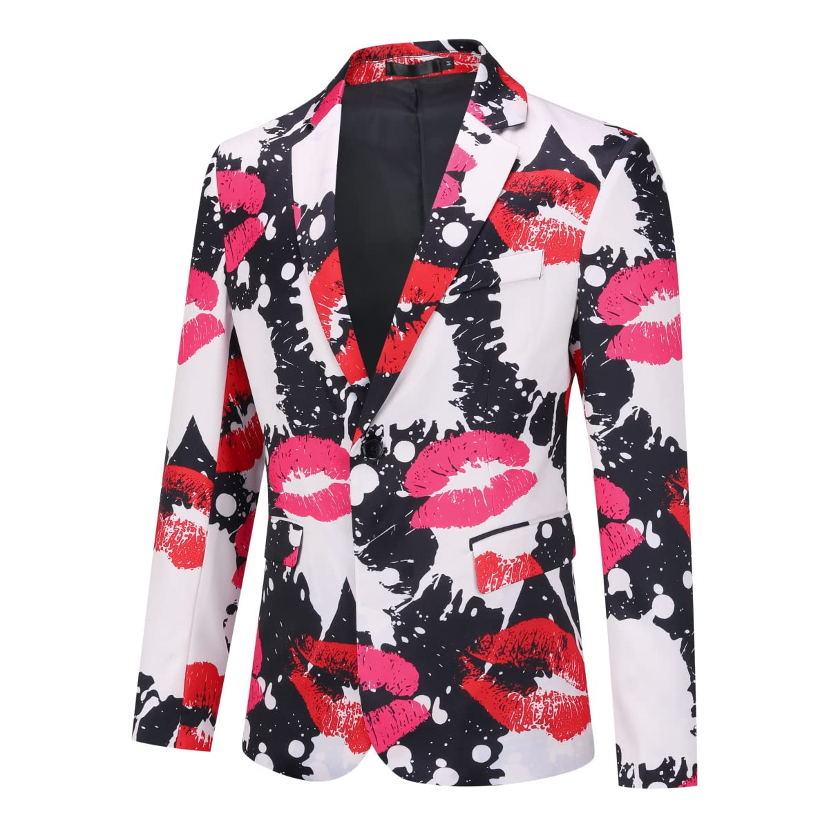 Mens Suit Jacket Floral Printed Two Button Casual Blazer Floral 03
