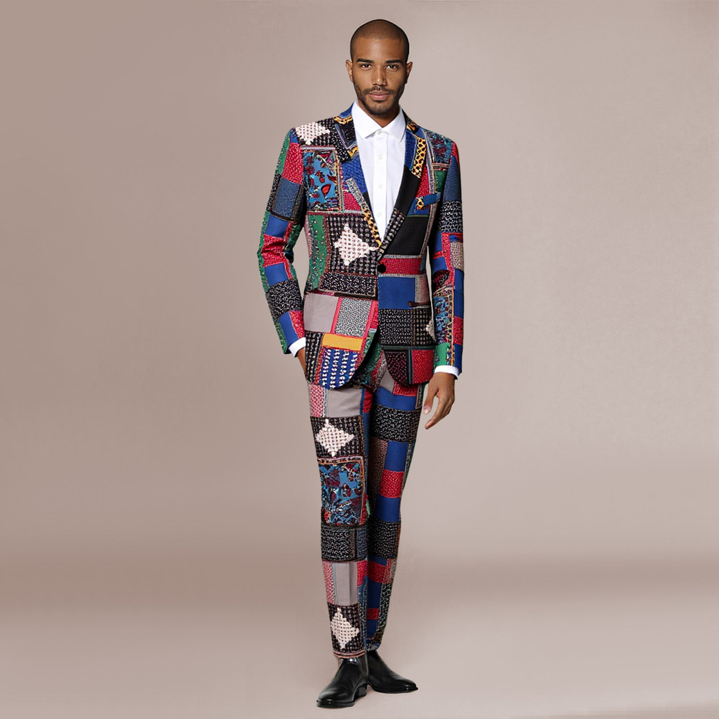 2-Piece Men's Two-Button Ethnic Style Print Suit