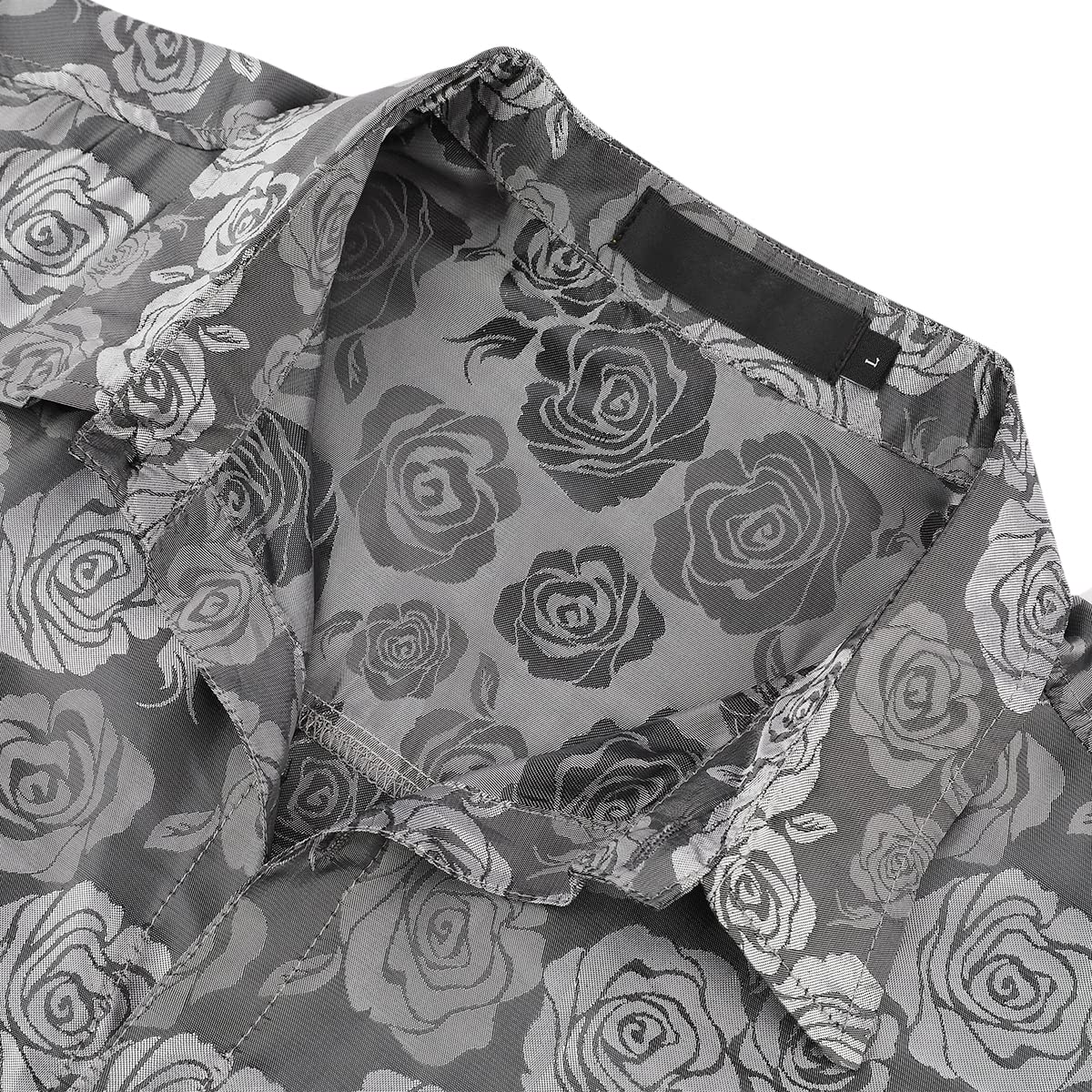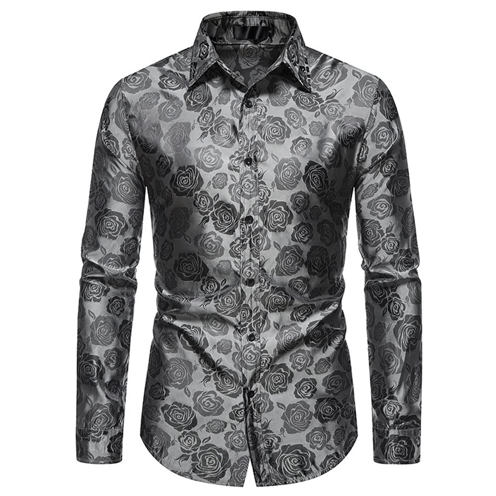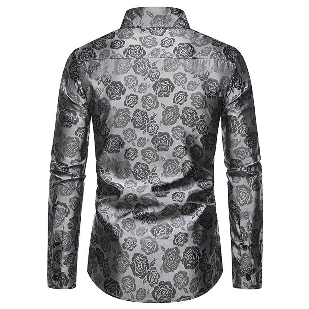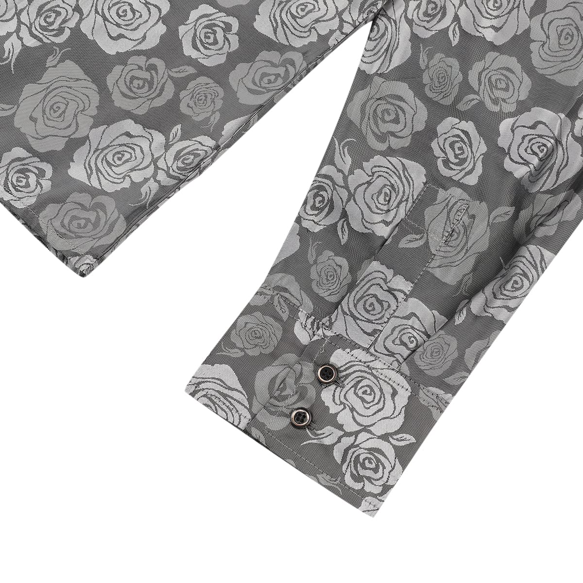 Men's Slim Fit Rose Printed Fashion Casual Shirt Grey