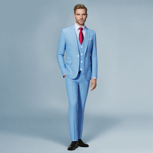 3-Piece Slim Fit Blue Plaid Modern Suit - Cloudstyle