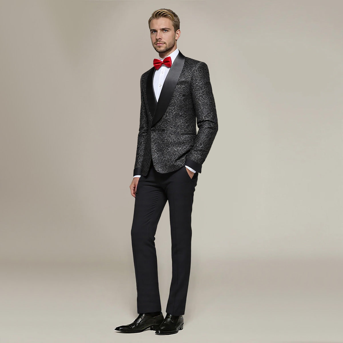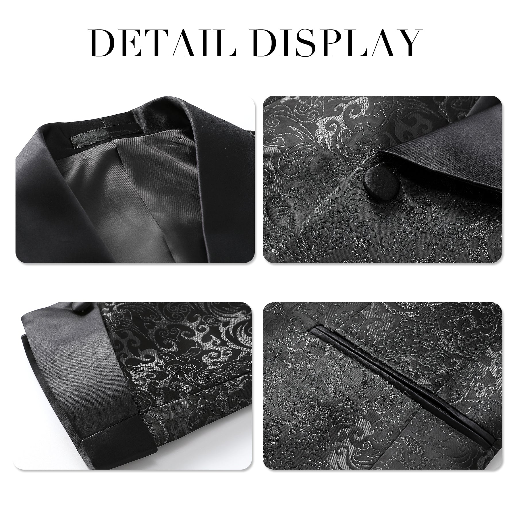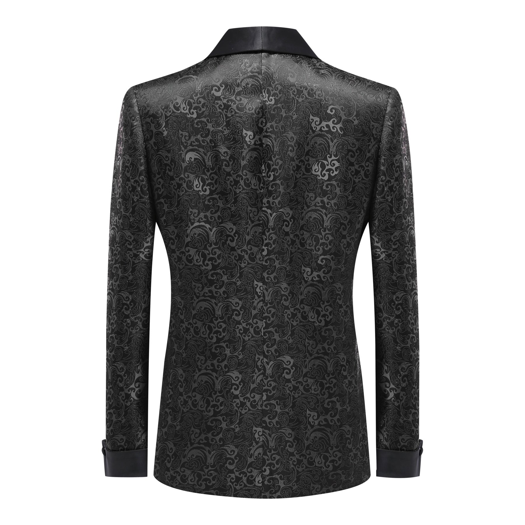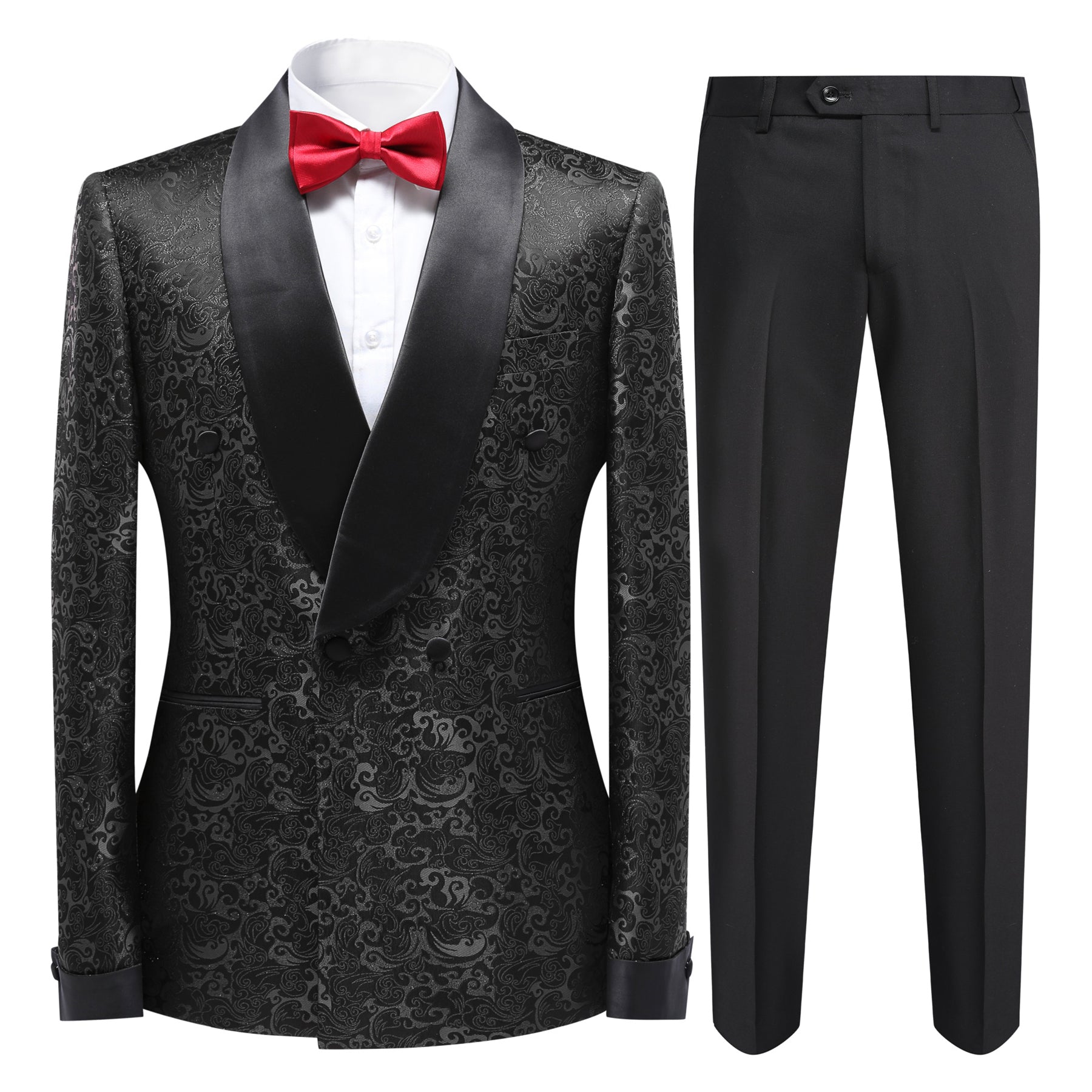 2-Piece Mens Jacquard Shawl Collar Double-Breasted Suit Black