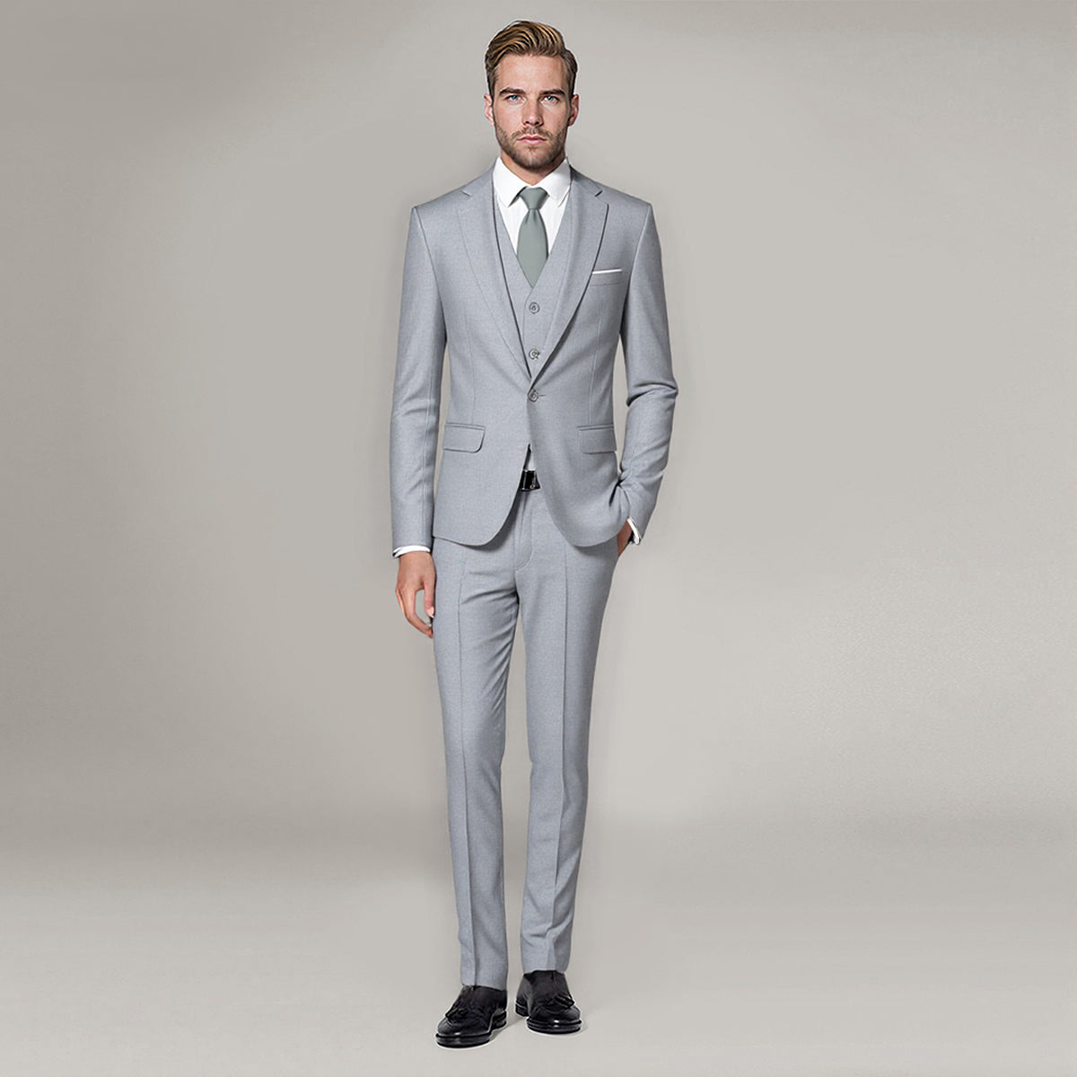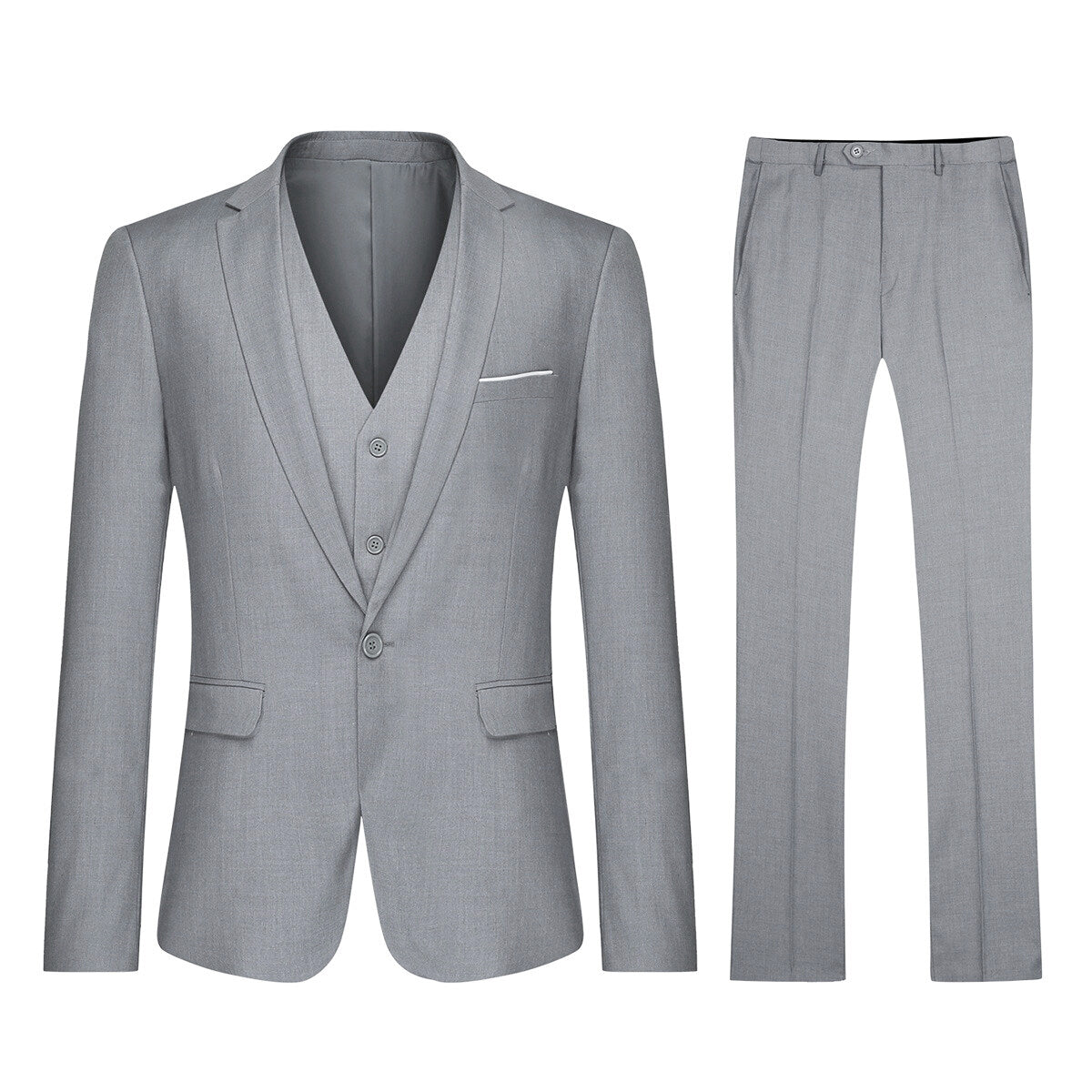 3-Piece Classic One Button Light Grey Suit