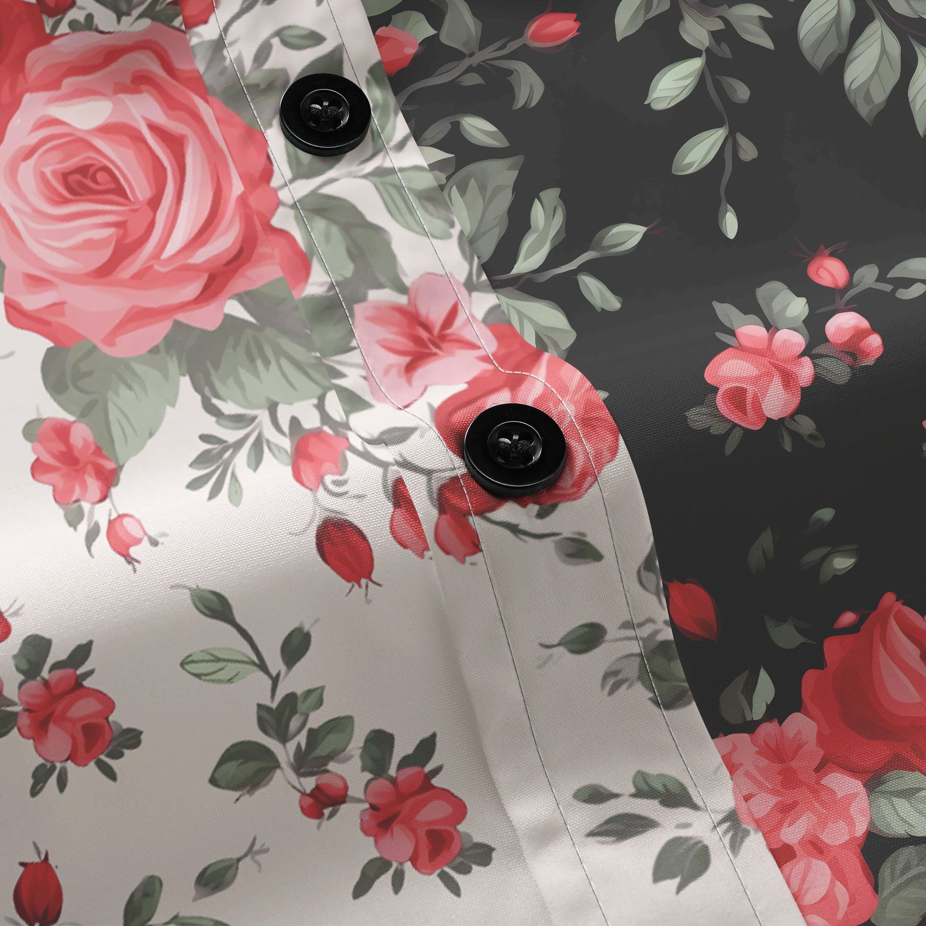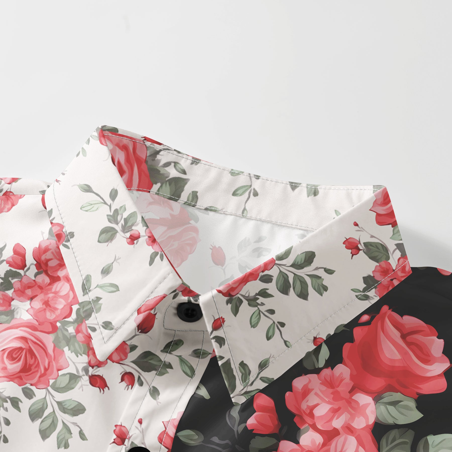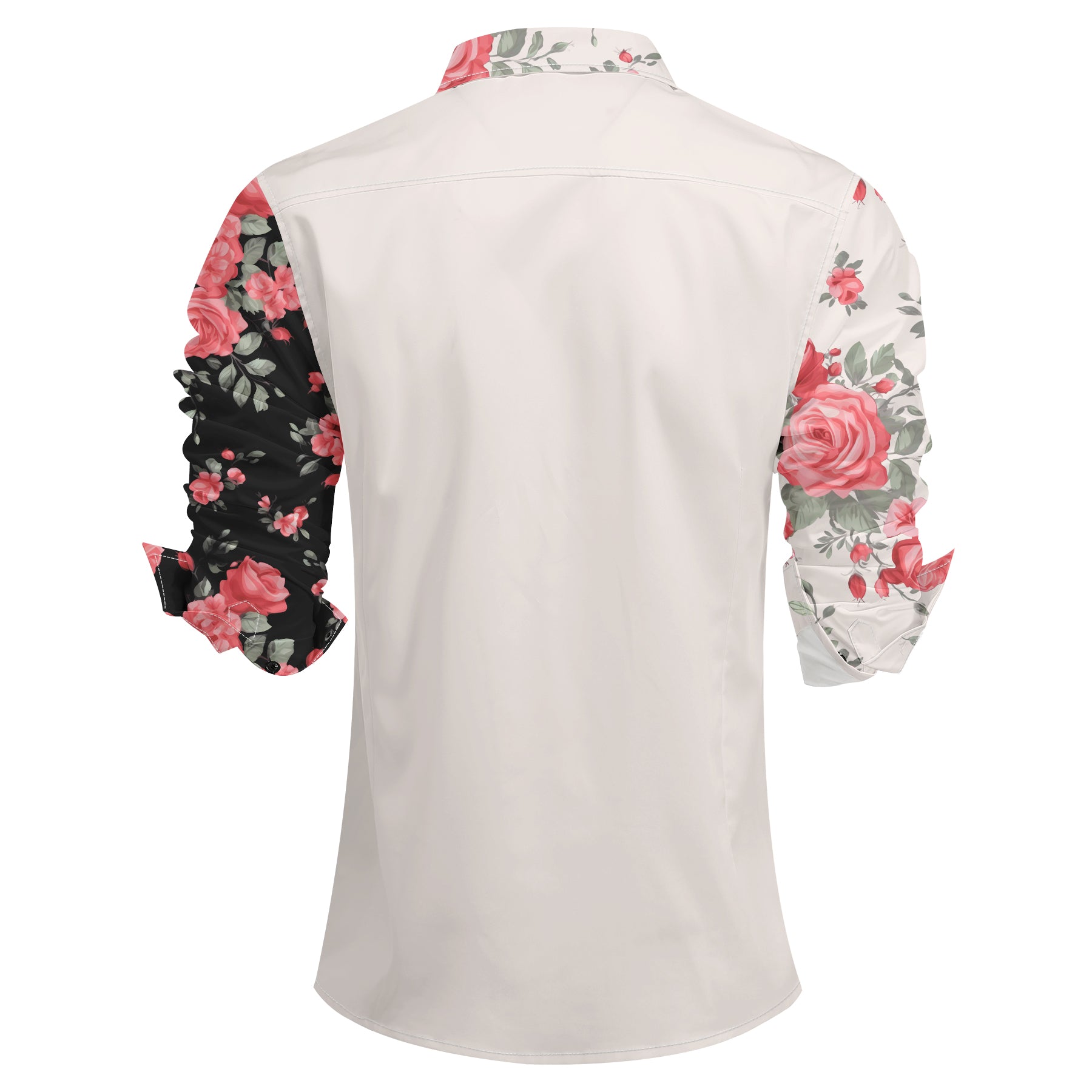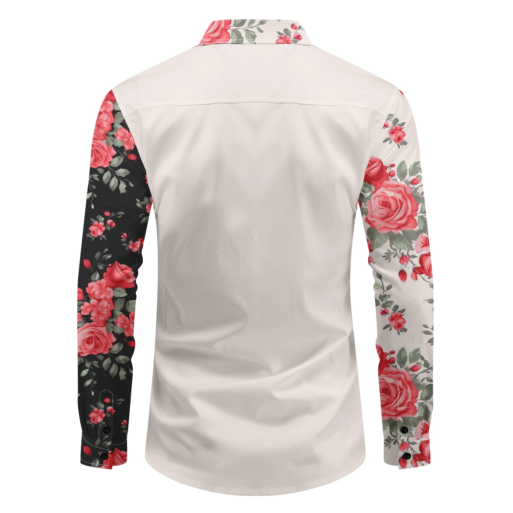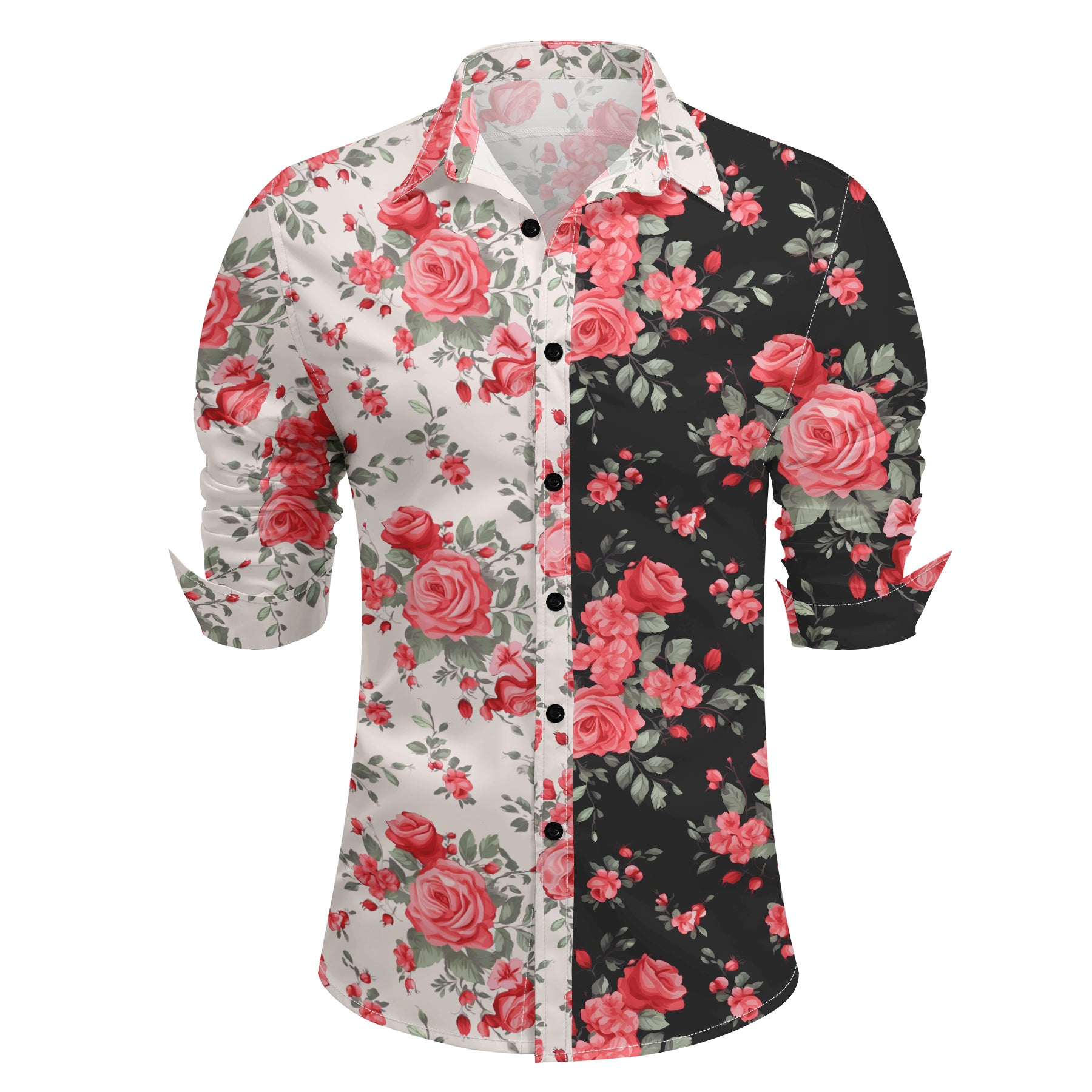 Mens Printed Lapel Long Sleeve Shirt Black White Pink