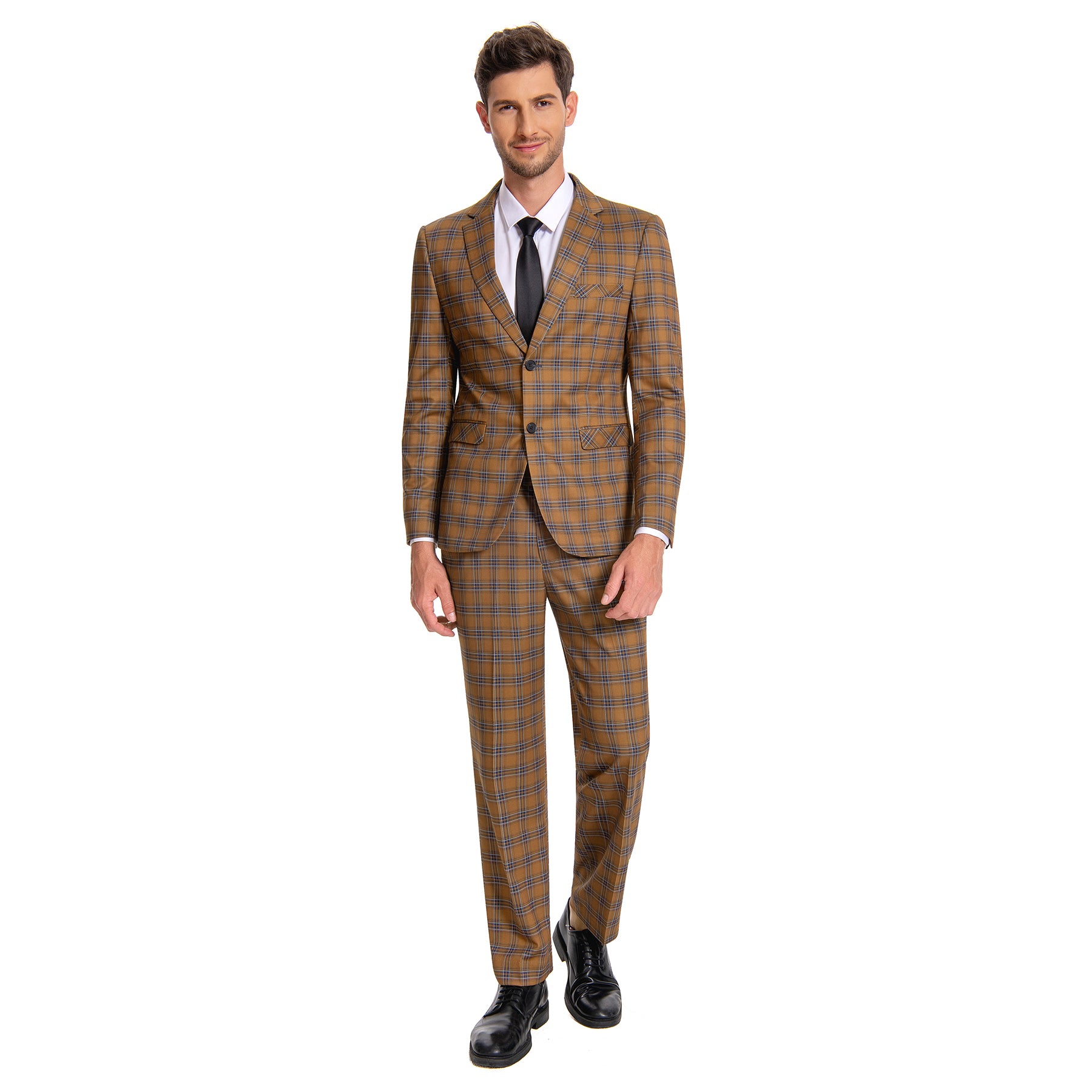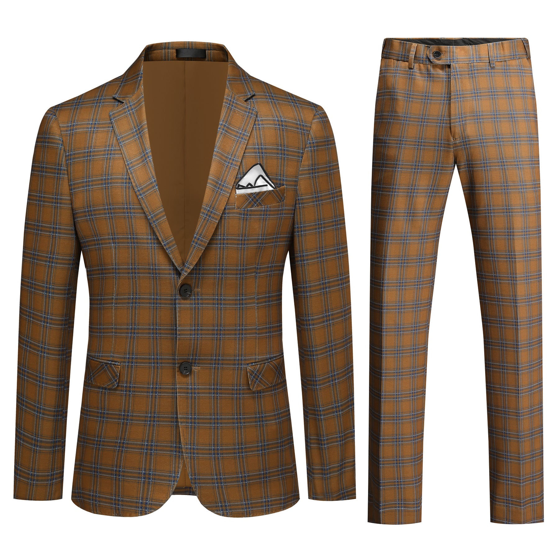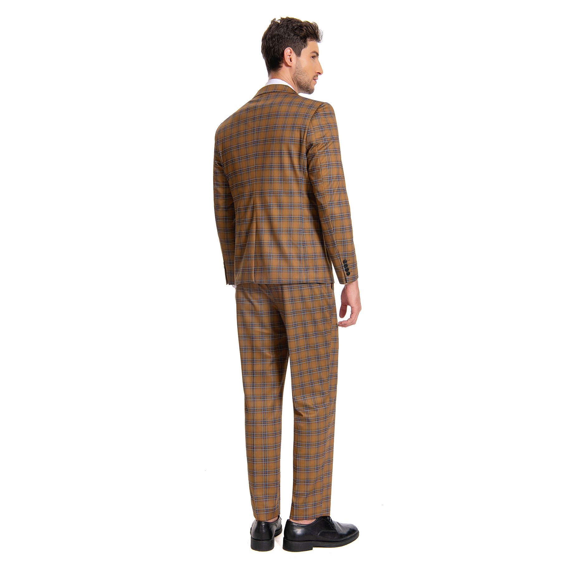2-Piece Men's 2-Button Suit Plaid Suit Brown