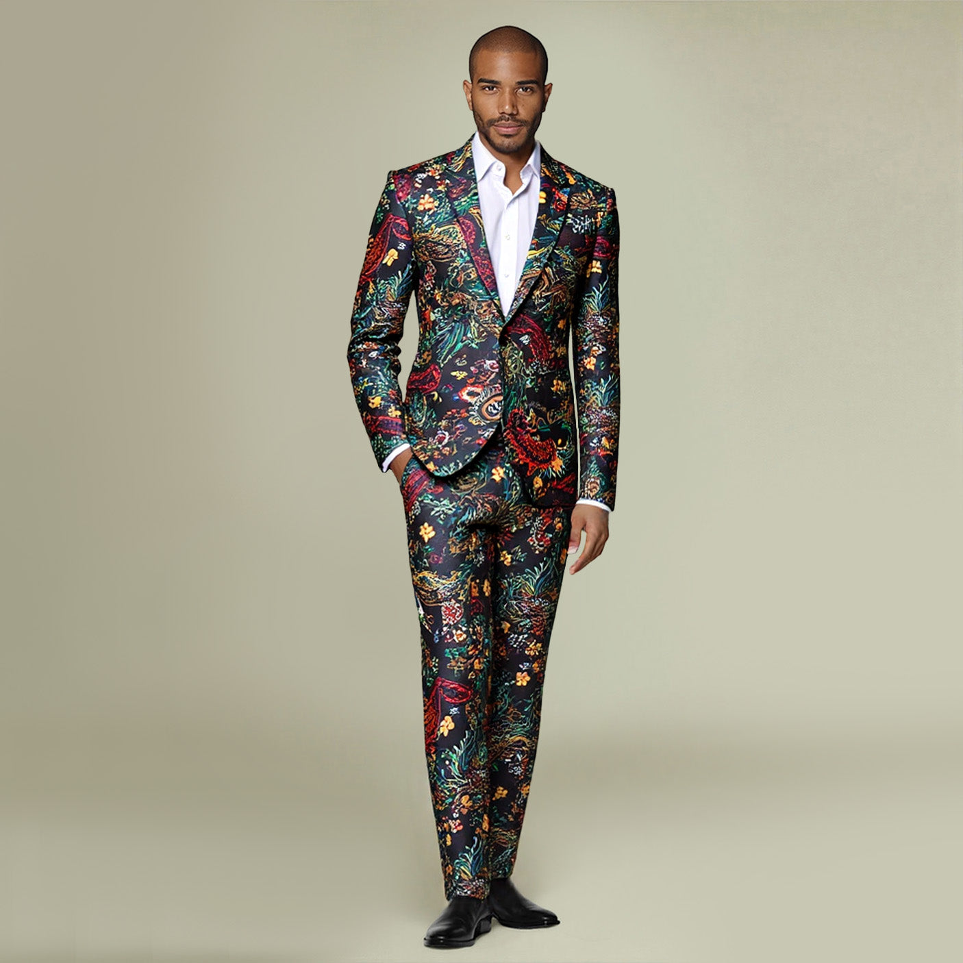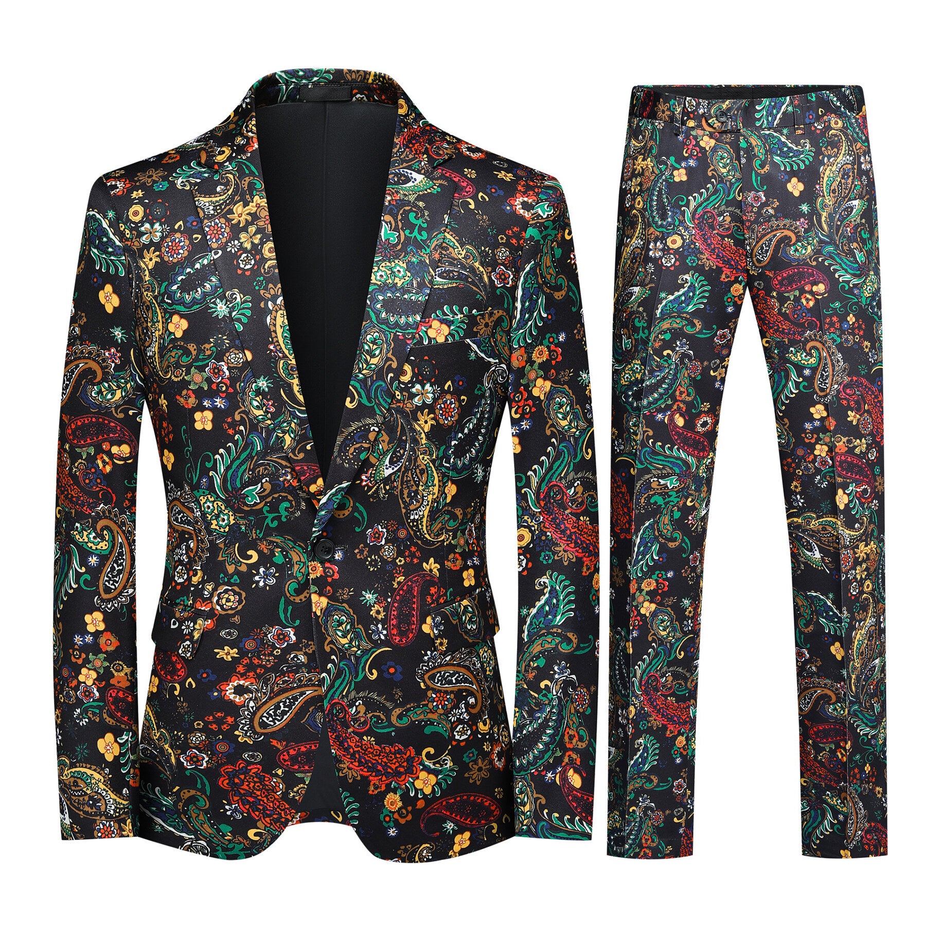 2-Piece Men's One-Button Ethnic Style Print Suit