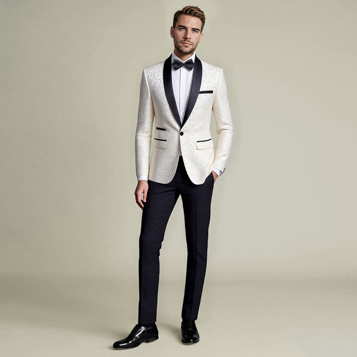 2-Piece Print Suit Slim Fit Paisley White Suit