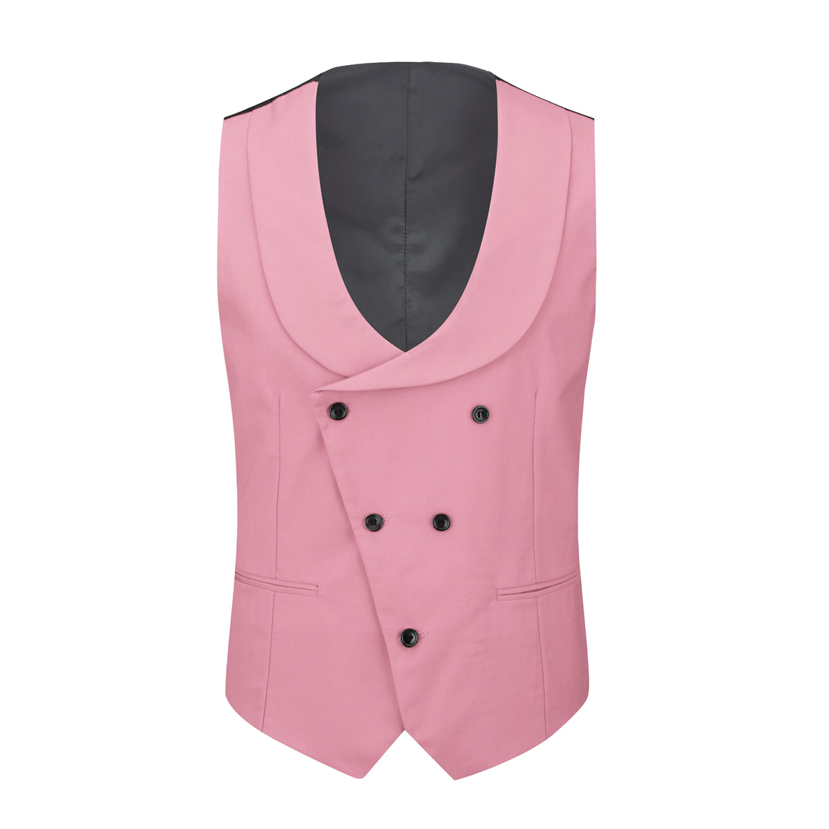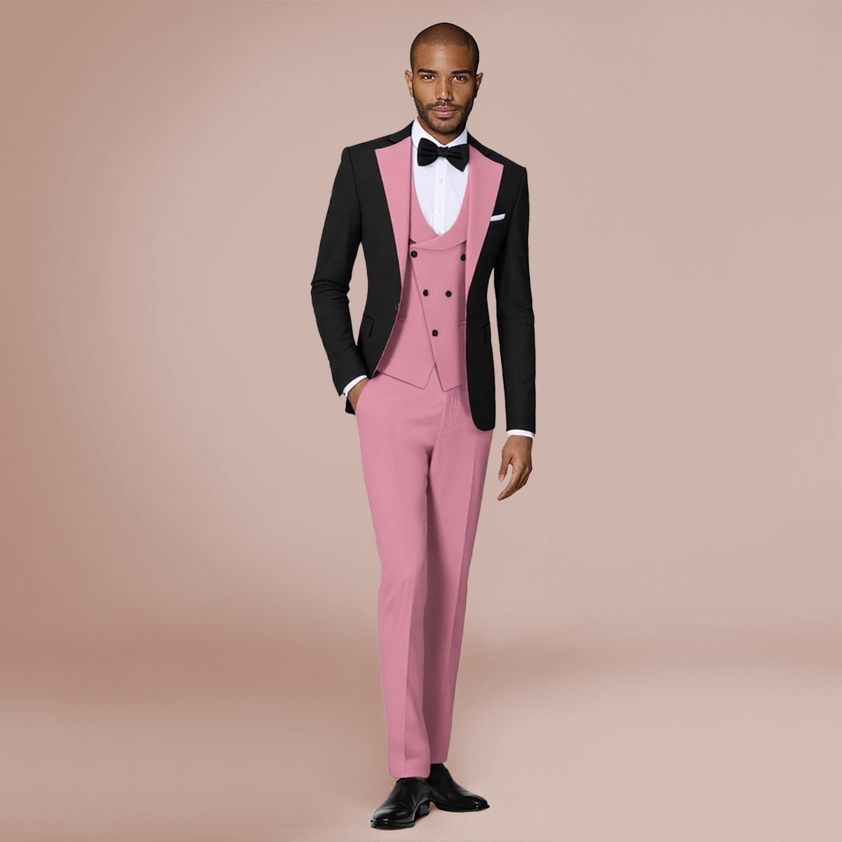 Men's 3-Piece Fashion One Button Color-Blocking Suit Pink