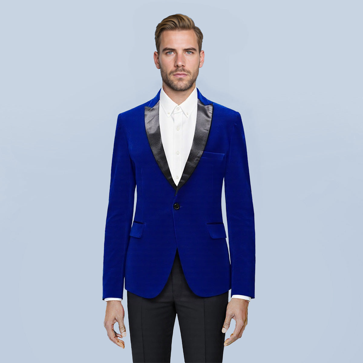 Blue Velvet Fashion Blazer Pleuche Tuxedo Jacket