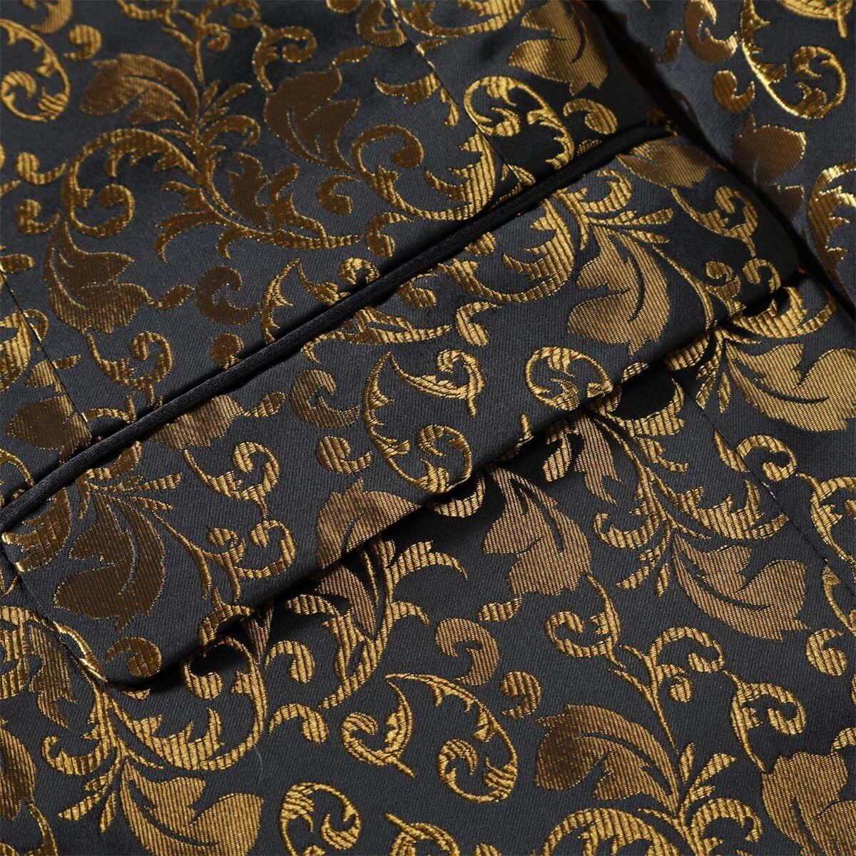 - [DESIGN]: This elegant suit blazer with black shawl collar, center vent, one chest pocket, two inner pockets, and two side flap pockets; Featuring exquisite floral print; 3D tailored fit, cut, and full shoulder design, overall nice, expressing a sharp look