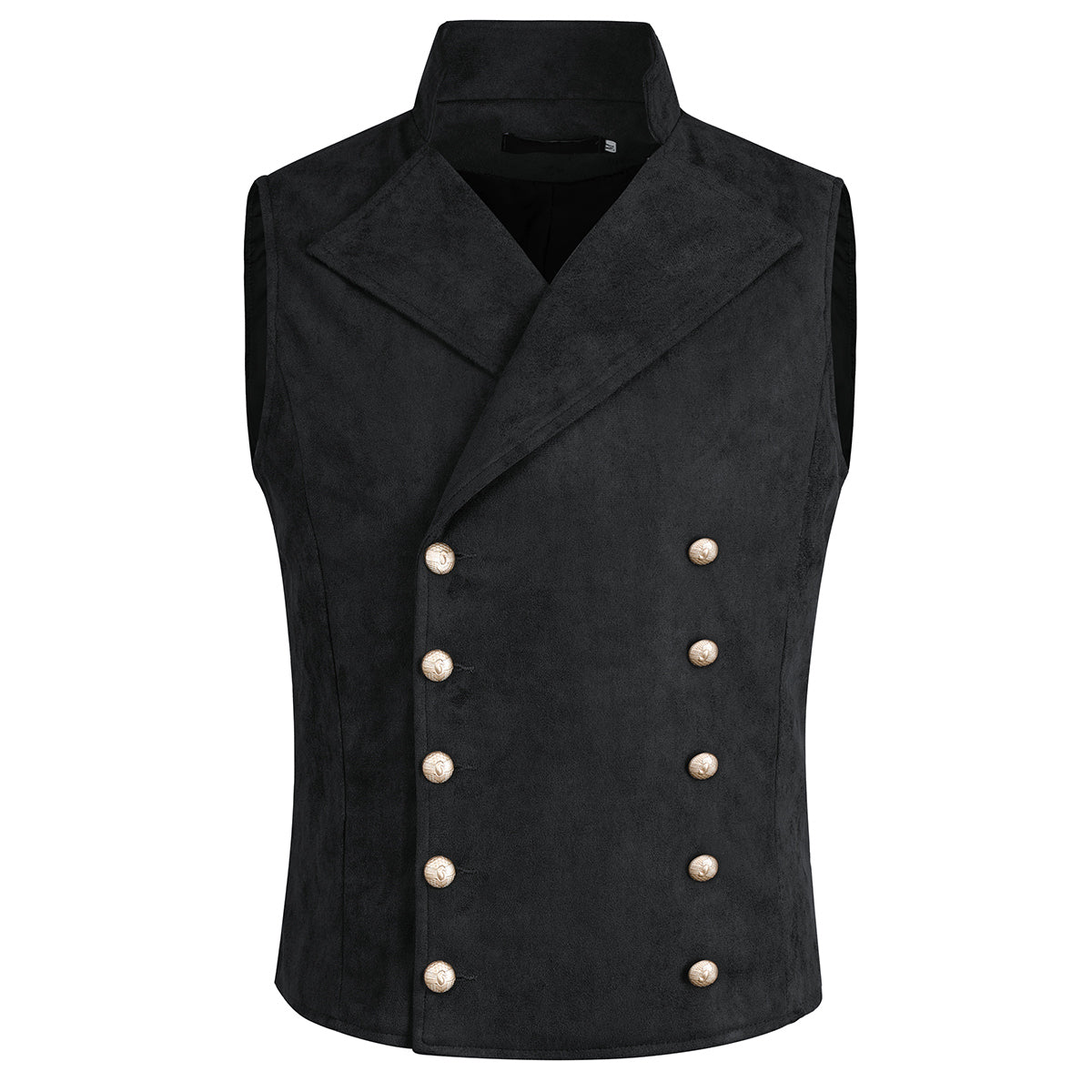 Double Breasted Velvet Gothic Steampunk Black Vest