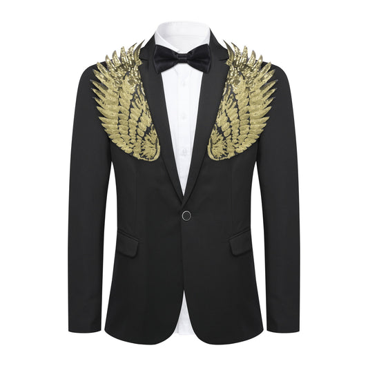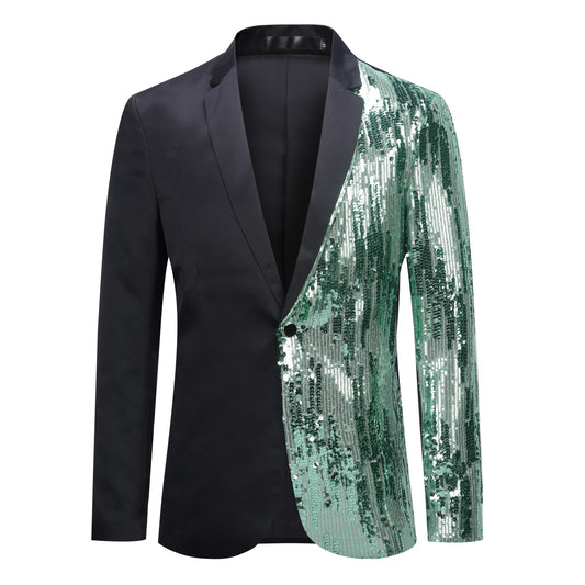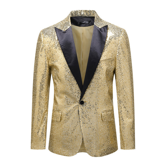 This shiny and stylish tux jacket with a black shawl collar, center vent, buttoned cuffs, 1 chest pocket, and 2 side front jet pockets, exquisite one-button fastening.