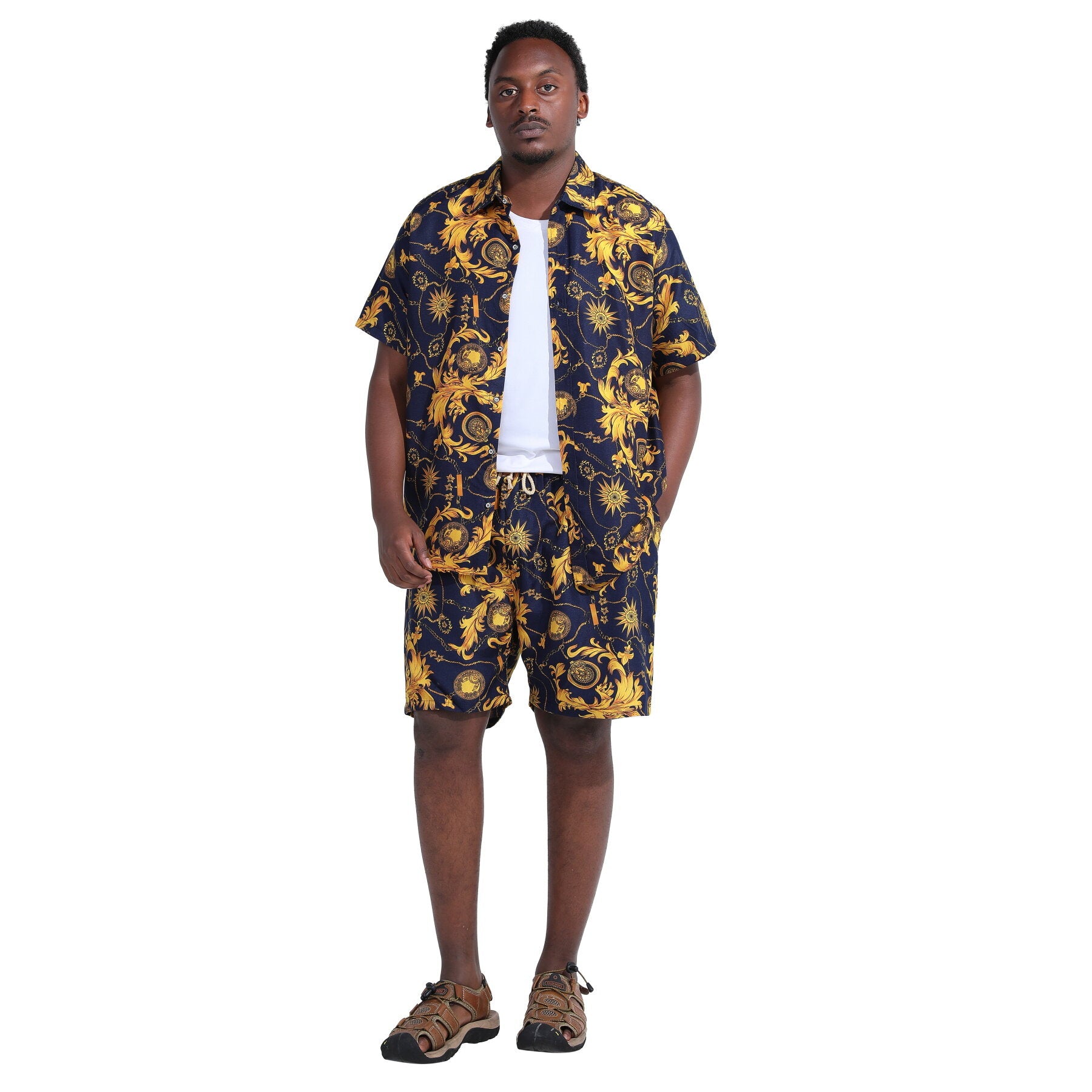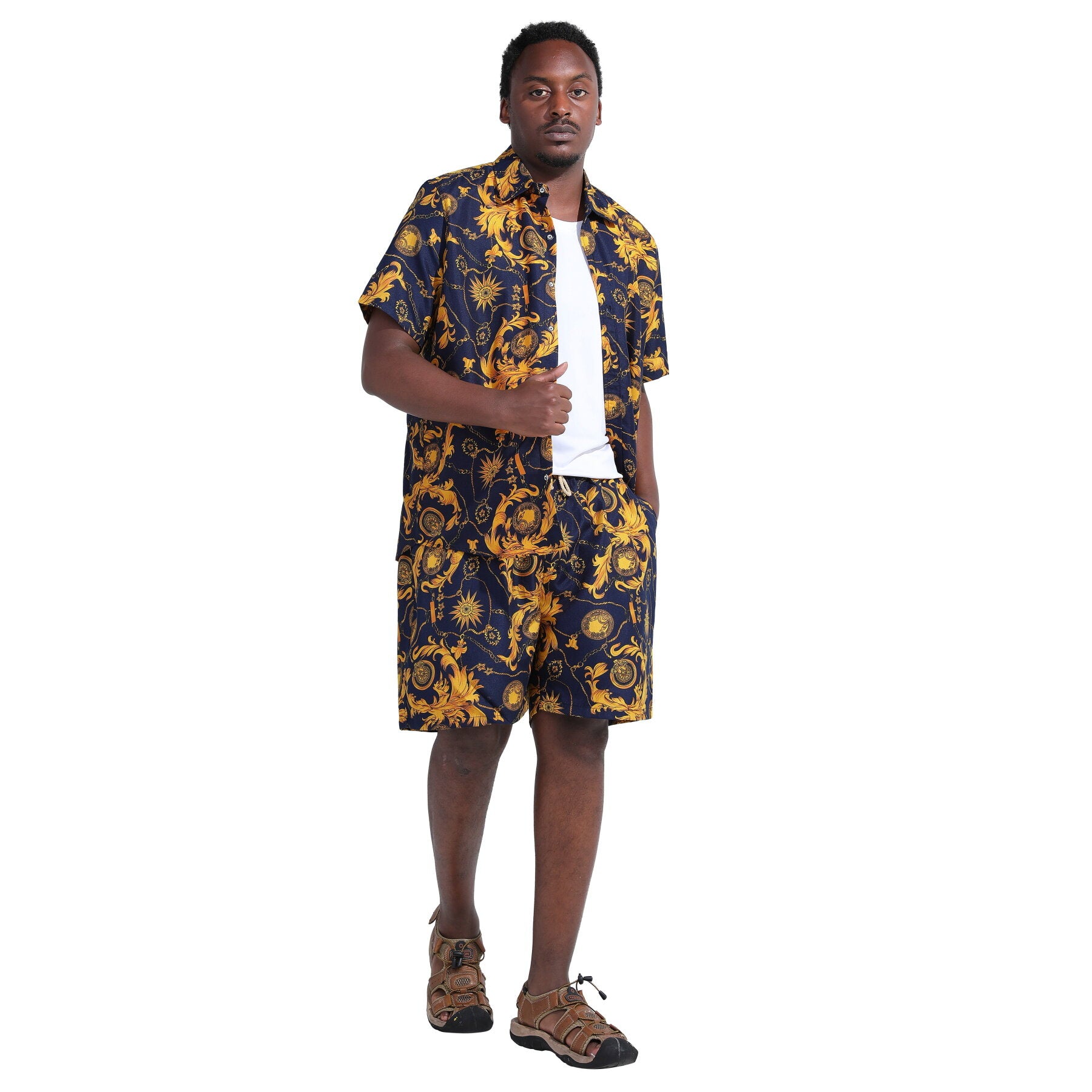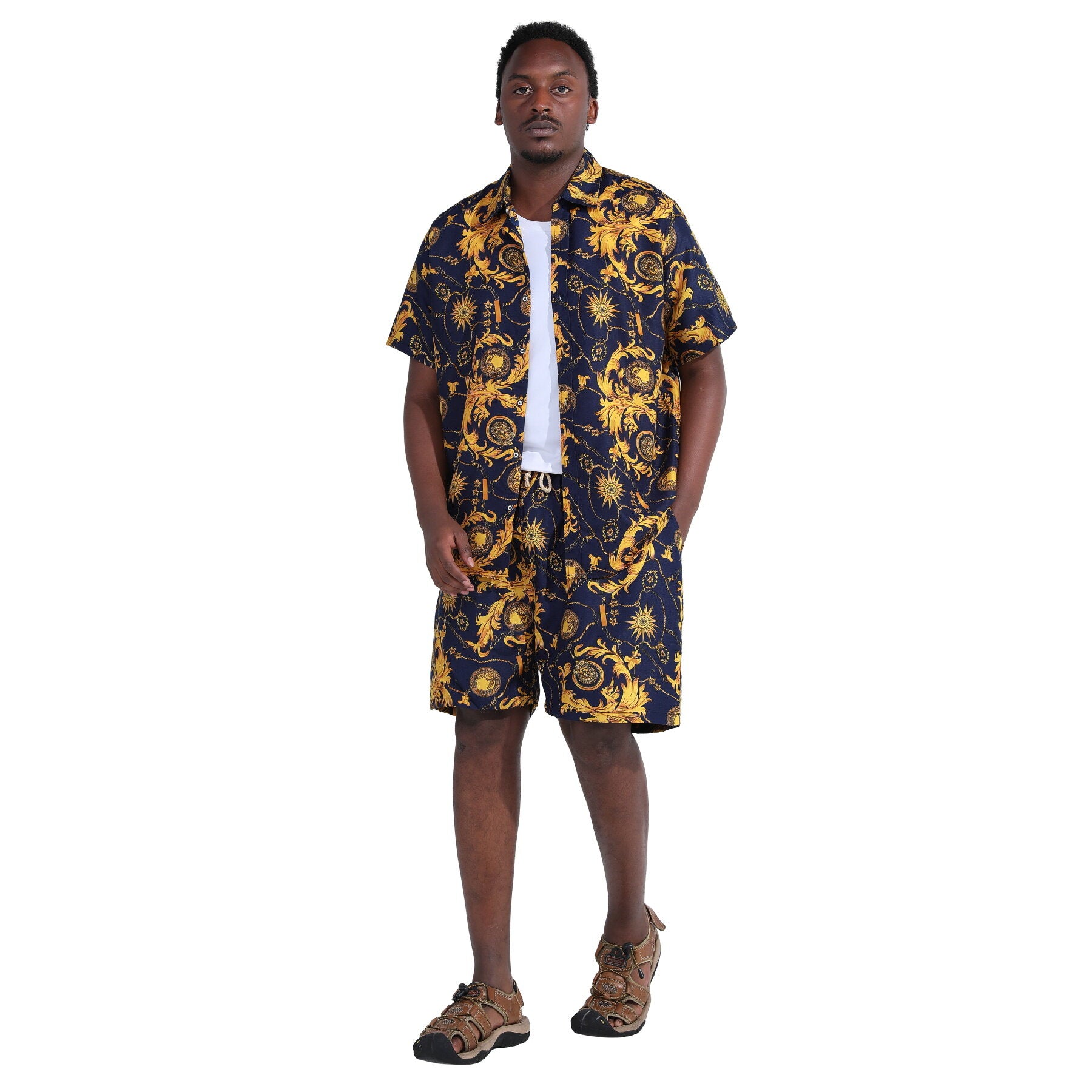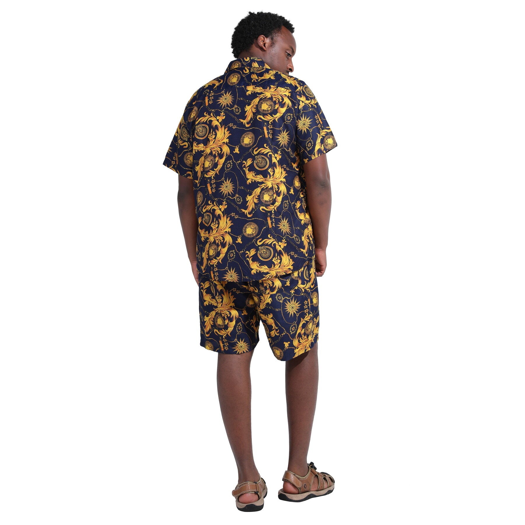 Button-front shirt featuring spread collar and short sleeve, all over printing. It's great for summer vacations like camp, luau, cruise, sun beach etc.
