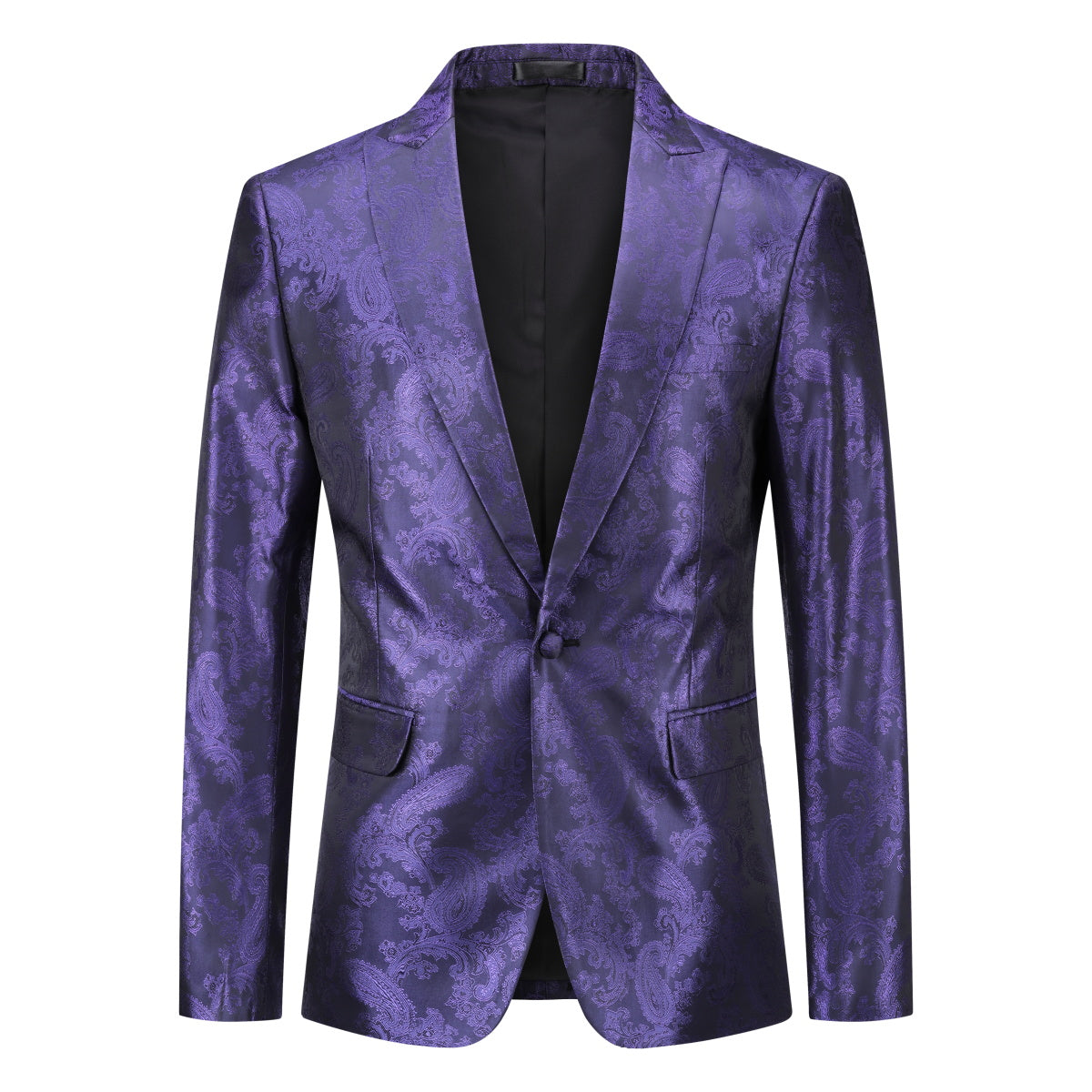 Single-breasted Notched Lapel Center Vent Button Closure Blazer Featuring Hot Stamping Printing Process.