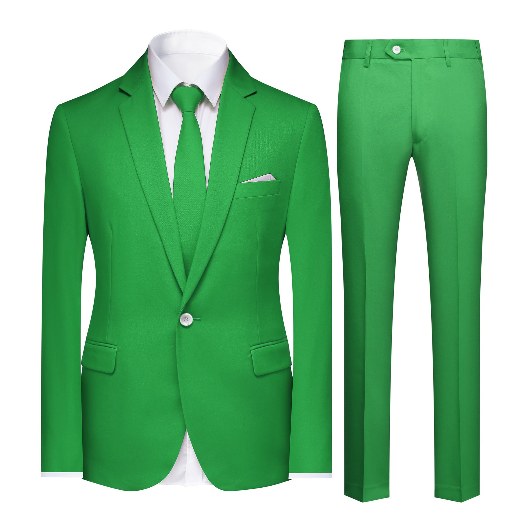 2-Piece Slim Fit Simple Designed Suit Green - Cloudstyle